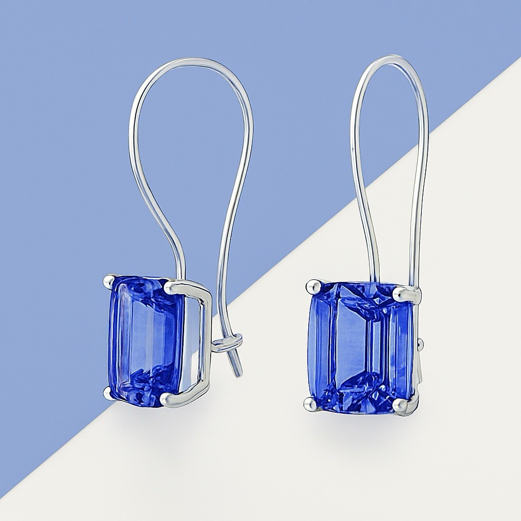 как выглядит 925 Sterling Silver Emerald Cut Blue Sapphire CZ Studs Dangle Earrings фото