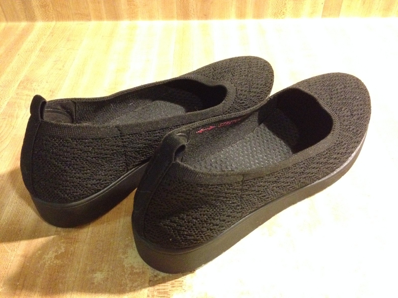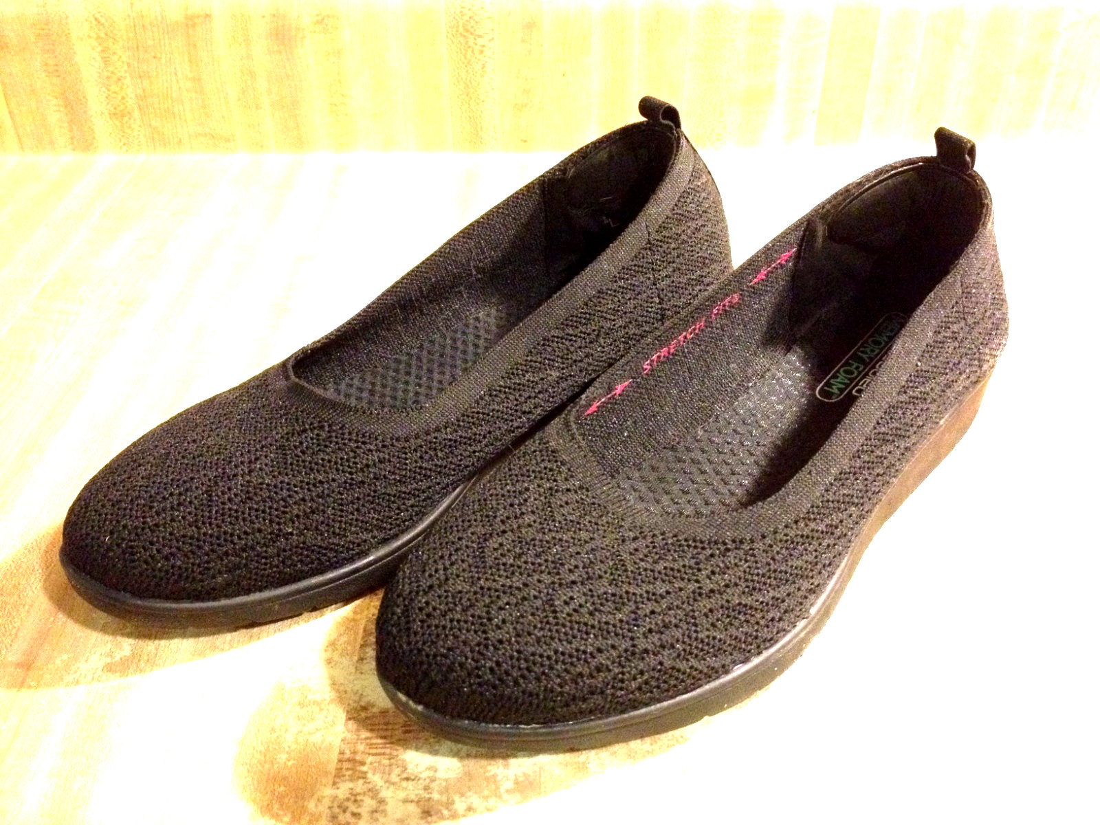 Skechers Womens 8M Cleos Flipside Black Mesh Slip On Ballet Loafer Sneaker Flat