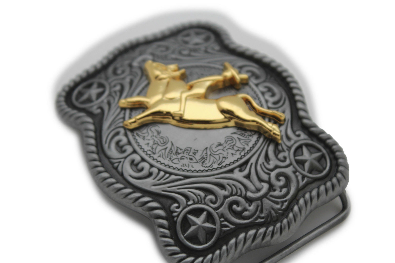 Men Women Belt Buckle Silver Metal Western 3D Rodeo Gold Bull Rider Cowboy Look