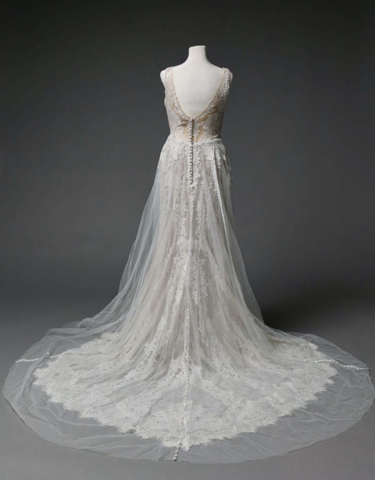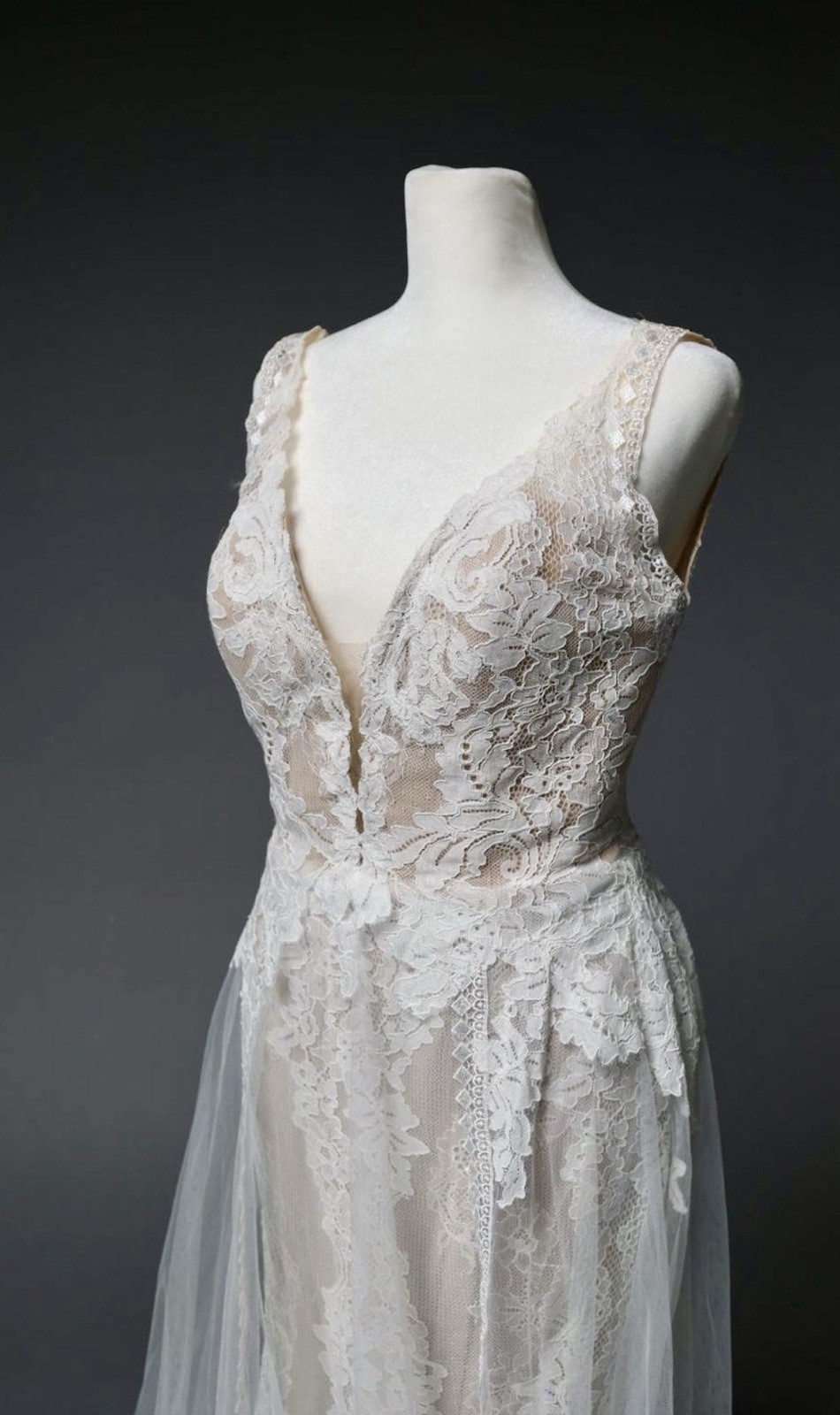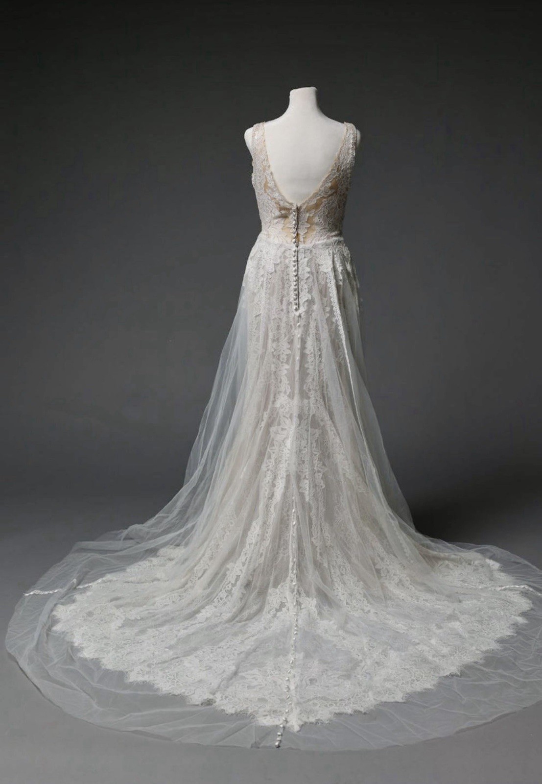 Madison James Ivory Lace A-Line Wedding Dress Sheer Bodice Chapel Train 8