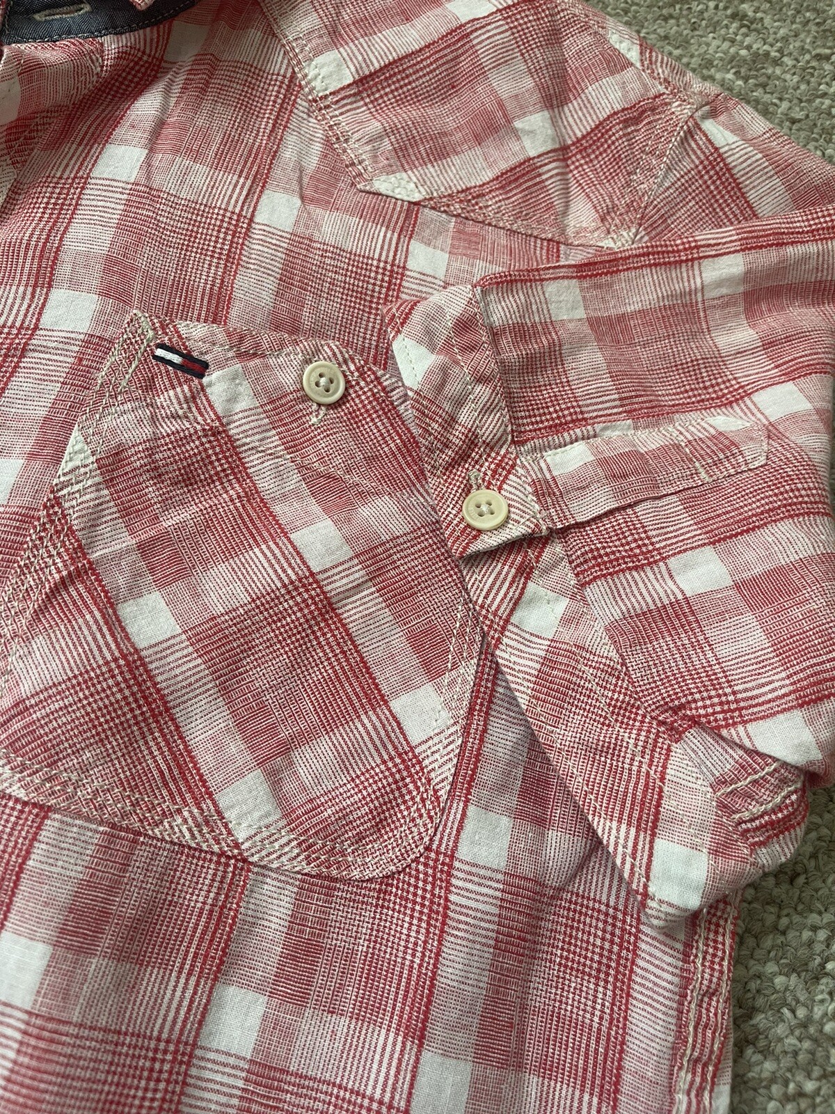 Tommy Hilfiger Linen Shirt Size Large between armpit 21 inches