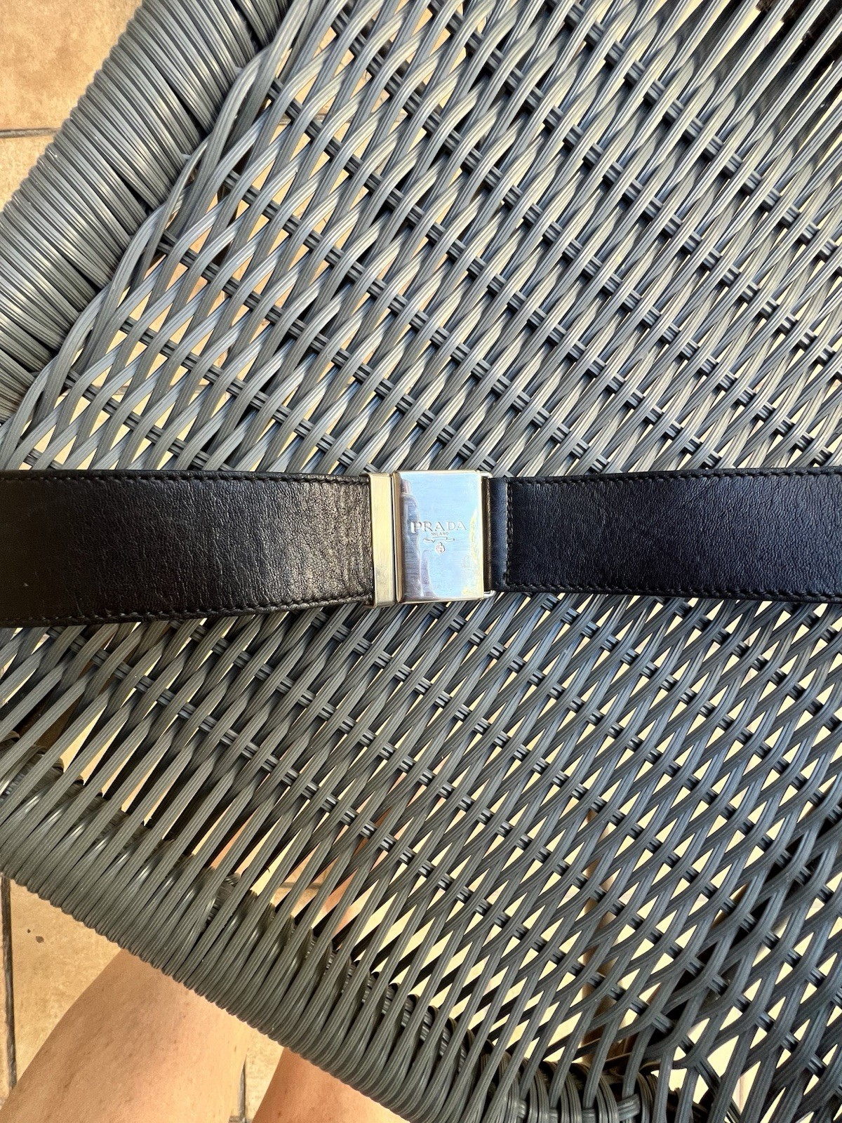 как выглядит Prada LOGO Black Genuine Leather Buckle Belt фото