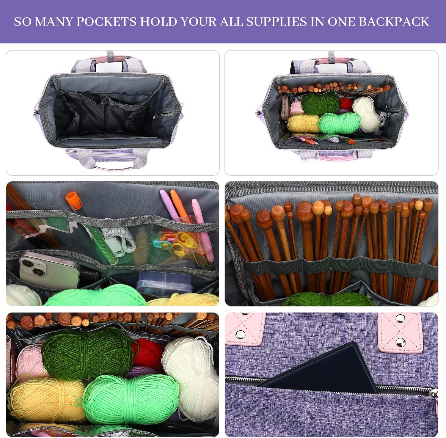 Crochet Backpack,Knitting Bag Backpack Yarn Storage Organizer Travel Purple