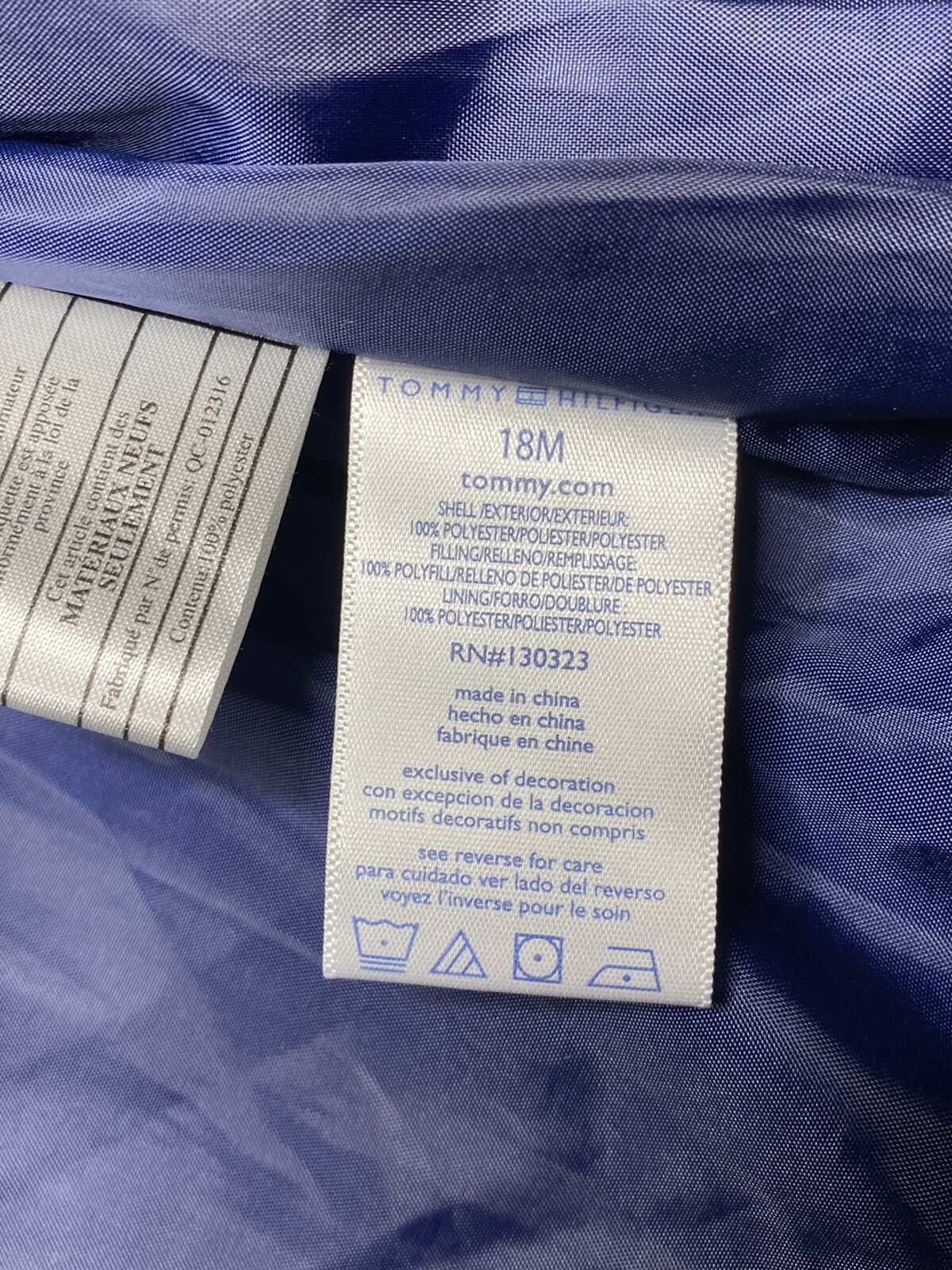 Tommy Hilfiger Puffer Vest Full Zip Flag Size 18 Mos Blue