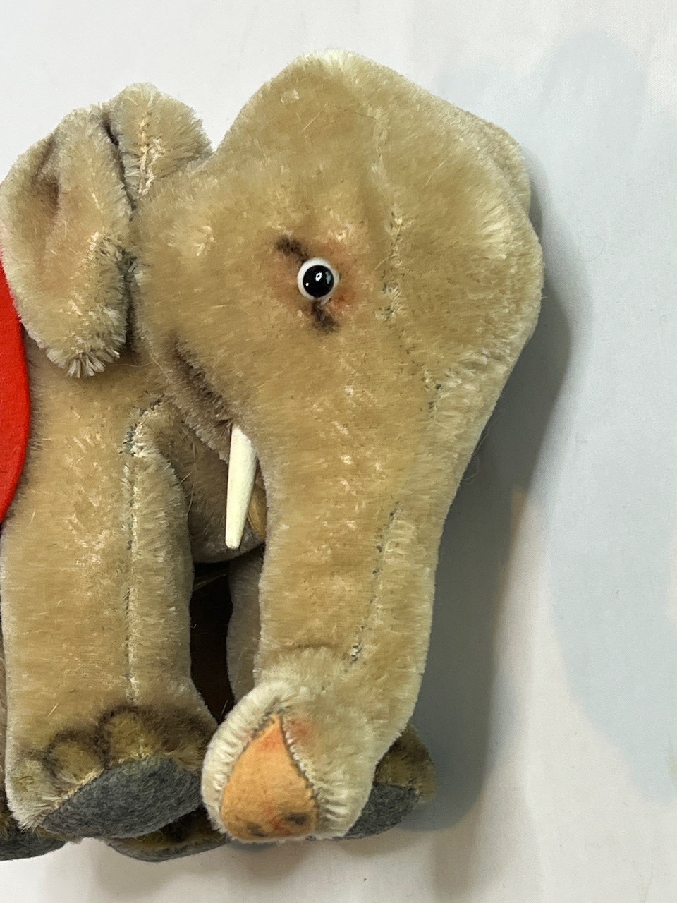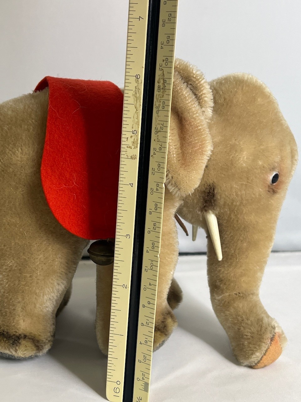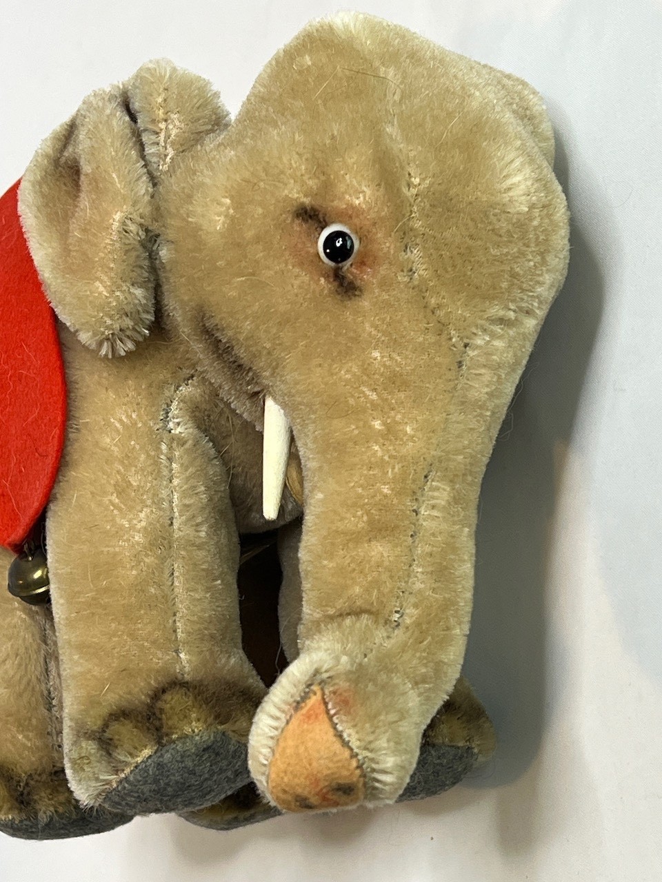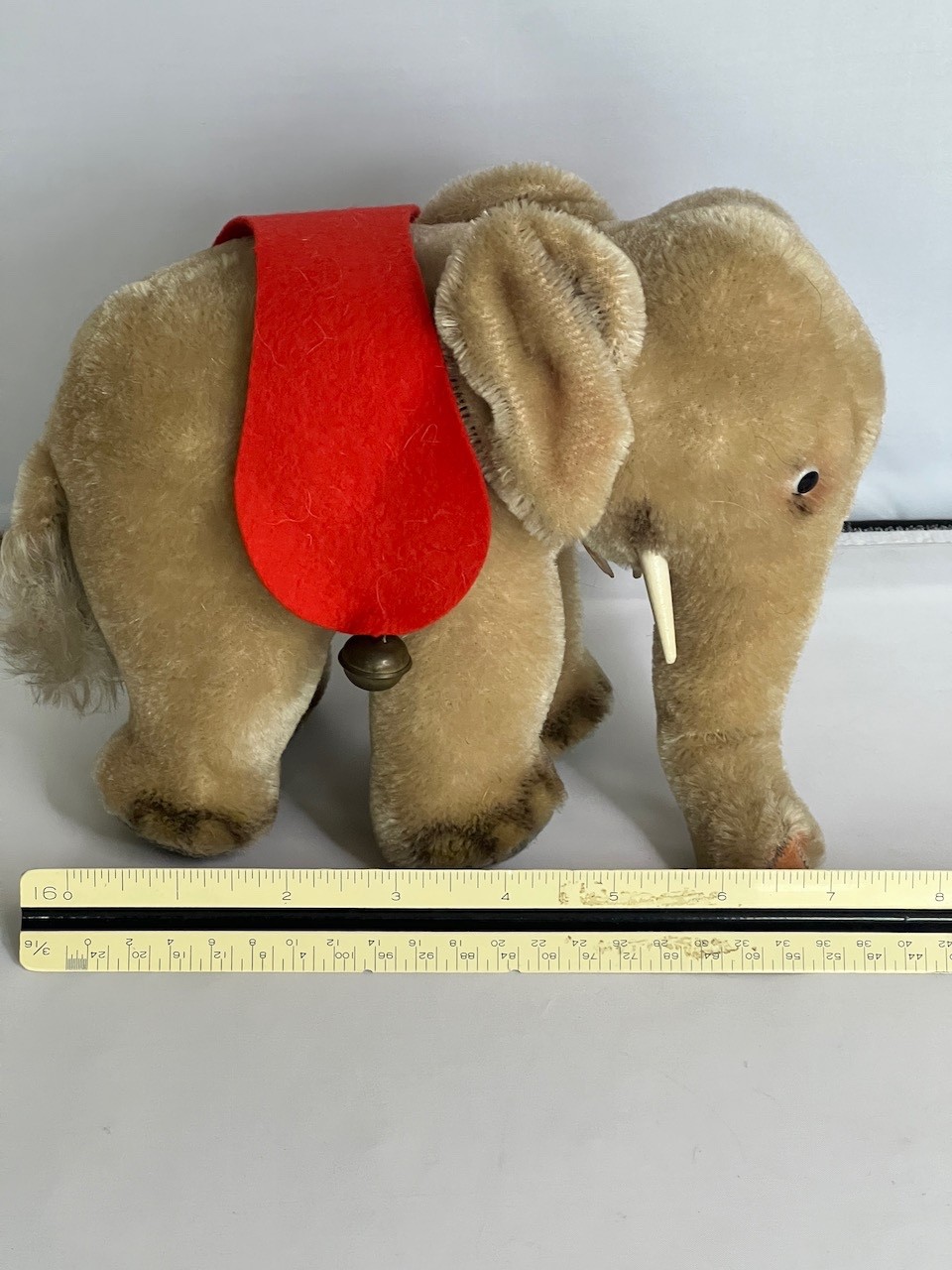• Vintage 1950's Steiff Elephant with Original Red Saddle and Bells Stuffed Animal