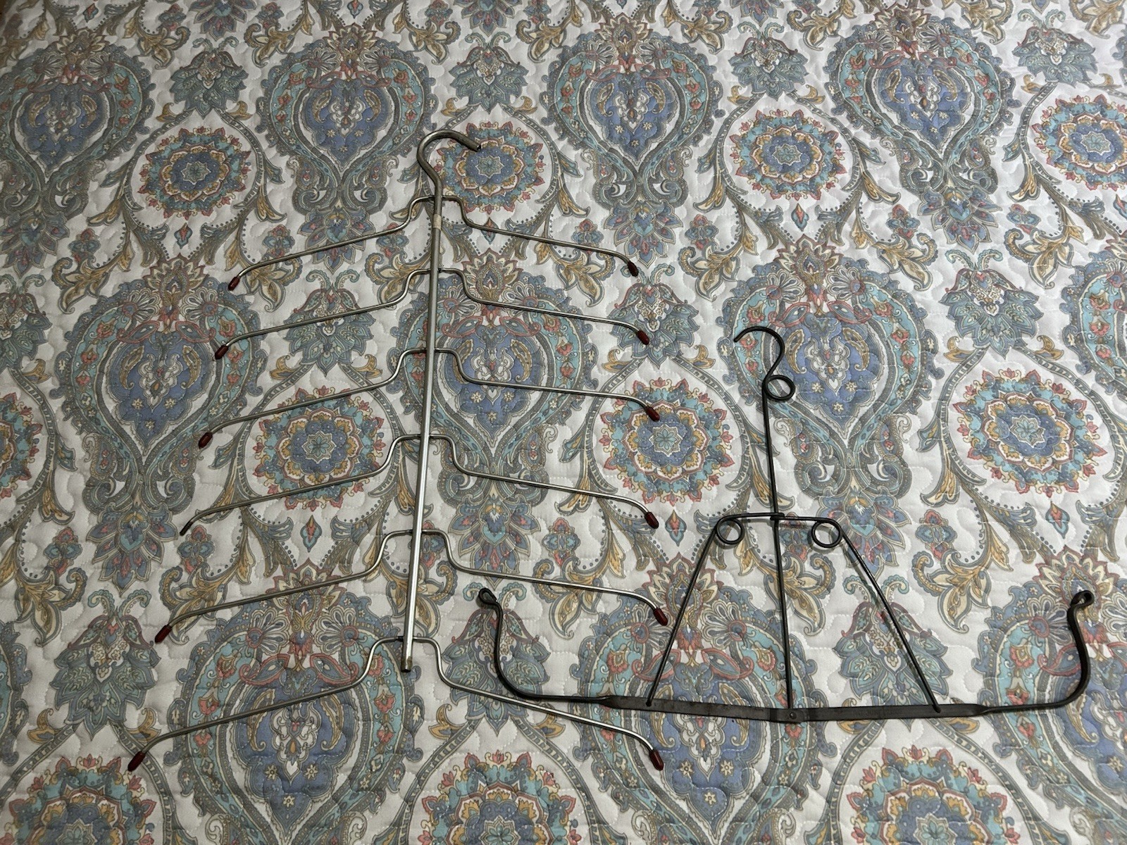 как выглядит Awesome Pair Of 2 Different Vintage Clothes Hangers Spring Loaded 6 Shirt фото