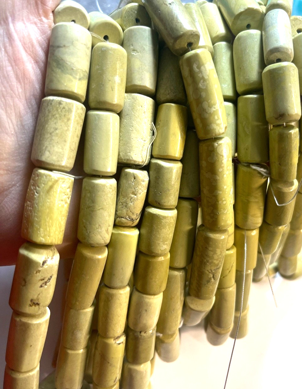 как выглядит VINTAGE YELLOW TURQUOISE SMOOTH TUBE BEADS 20X15 MM 15" BELOW WHOLESALE фото