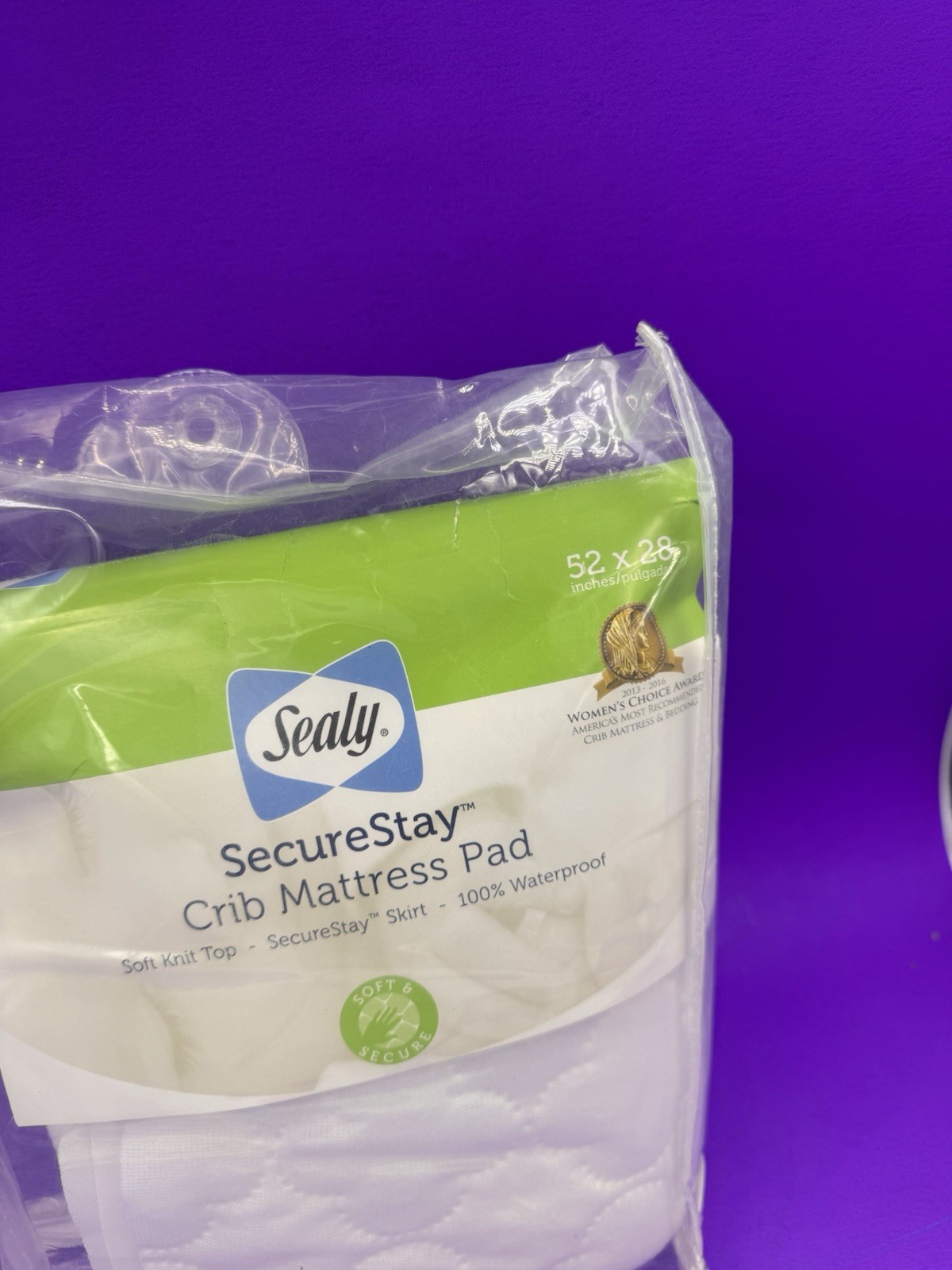 как выглядит SEALY SECURESTAY WHITE CRIB MATTRESS PAD WHITE - NEW IN PACKAGE фото