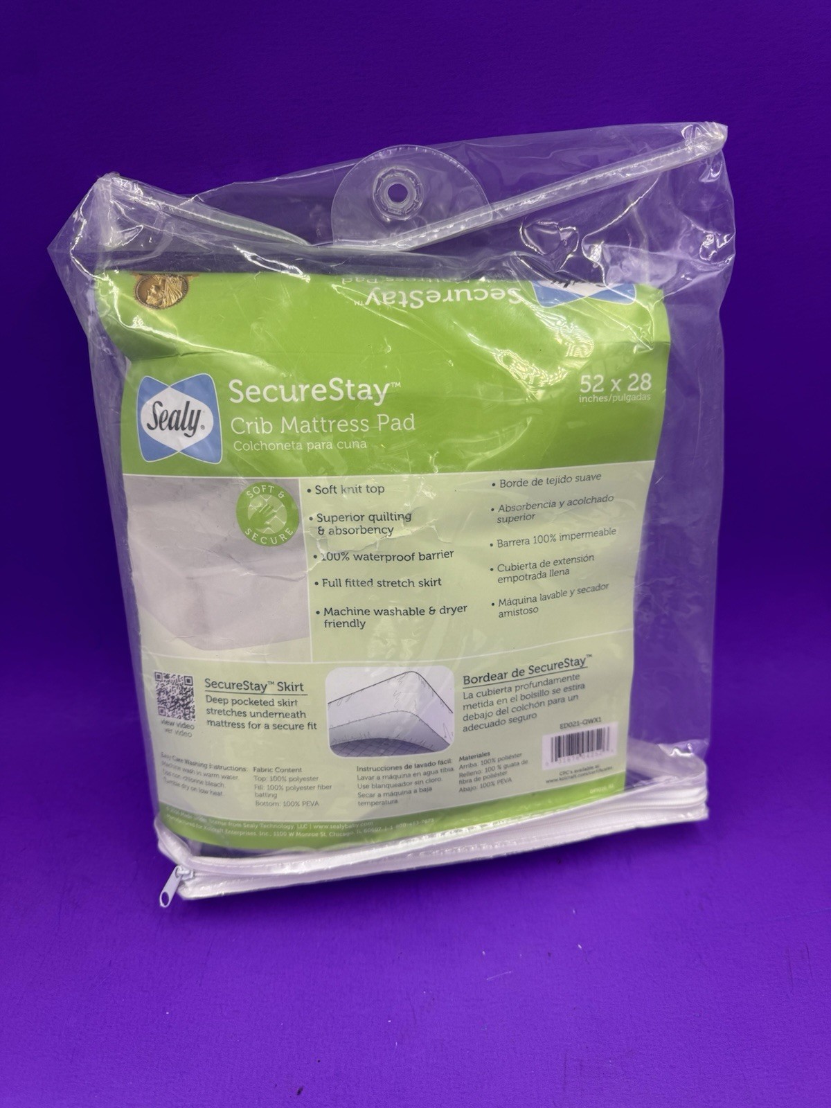 SEALY SECURESTAY WHITE CRIB MATTRESS PAD WHITE - NEW IN PACKAGE