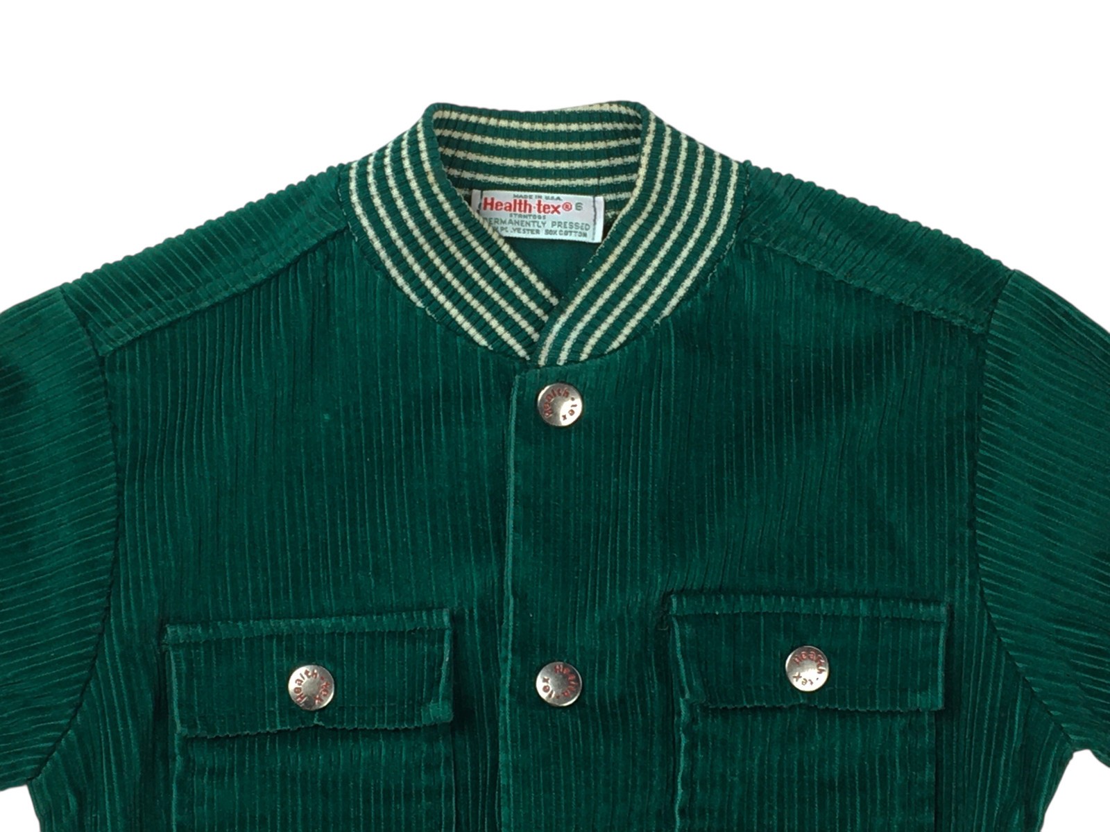 Vintage 70s Health-Tex Green Corduroy Jacket Kids Boys Size 6 Bomber Varsity