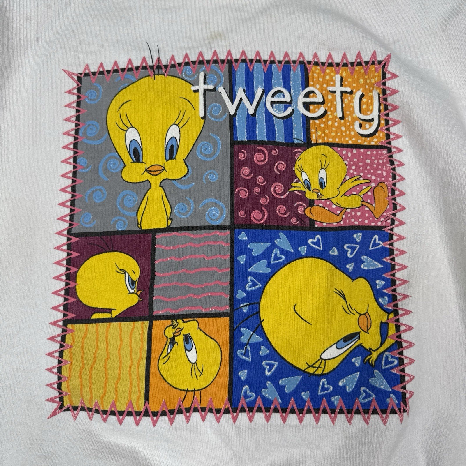 Vintage 90s Fruit Of The Loom Tweety Bird Looney Tunes Sweatshirt White Size XL