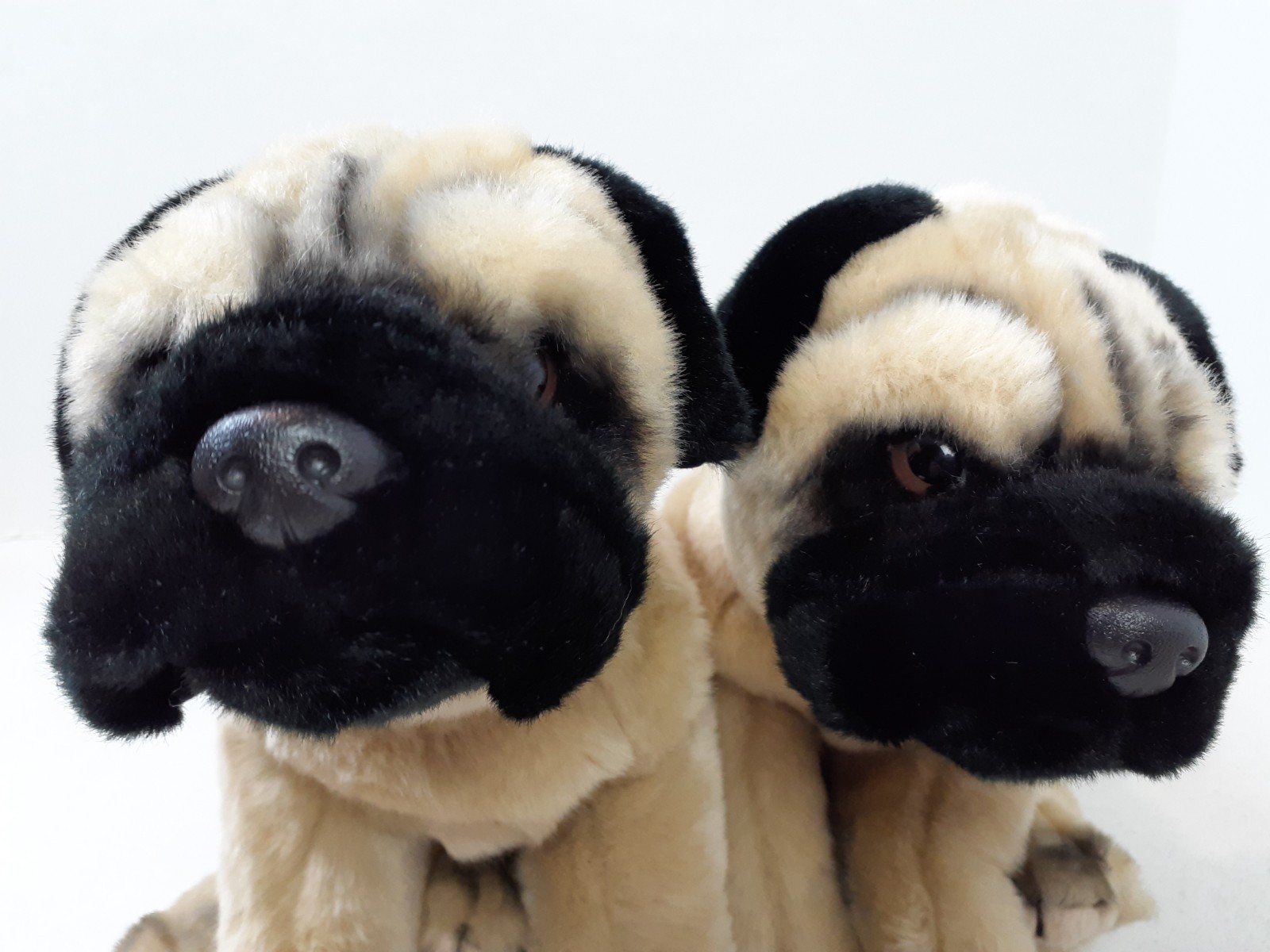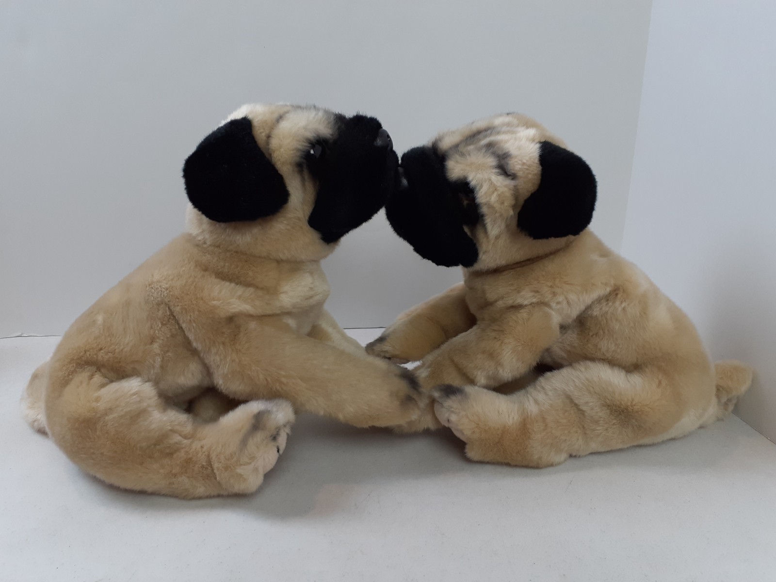 как выглядит 2 Animal Alley Pug Dogs Plush Puppy Tan Stuffed Animal Toys 9x12 Toys R Us 2000 фото