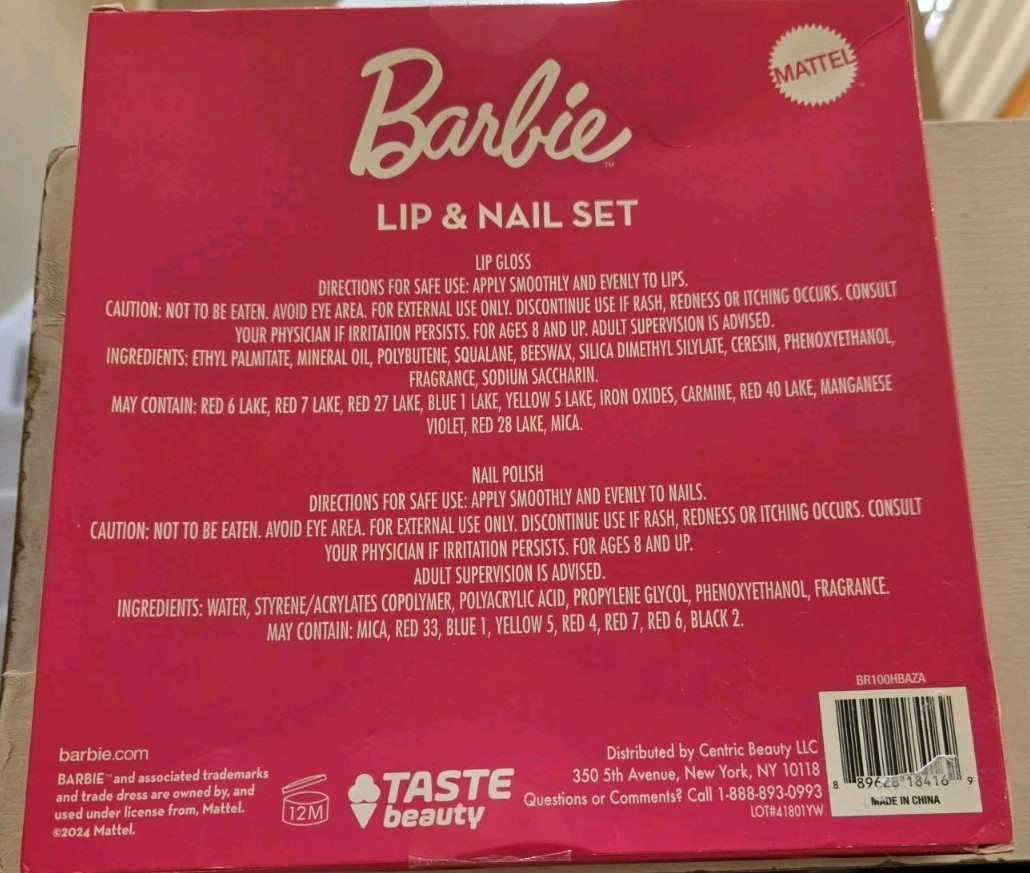BARBIE Lip Nail 10pc Set- 5 Lip Glosses/5 Nail Polish Asst. Colors Mattel NIB