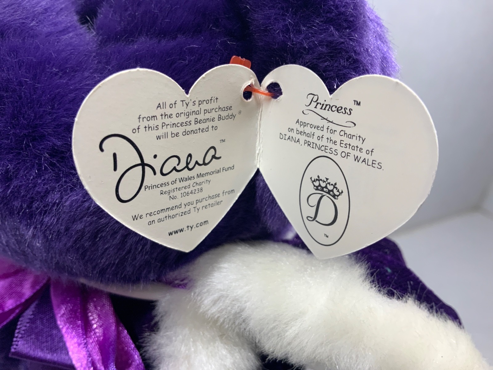 как выглядит TY Beanie Buddy PRINCESS DIANA 14 Purple Plush Bear W/Cape, Tiara Tags 1998 фото