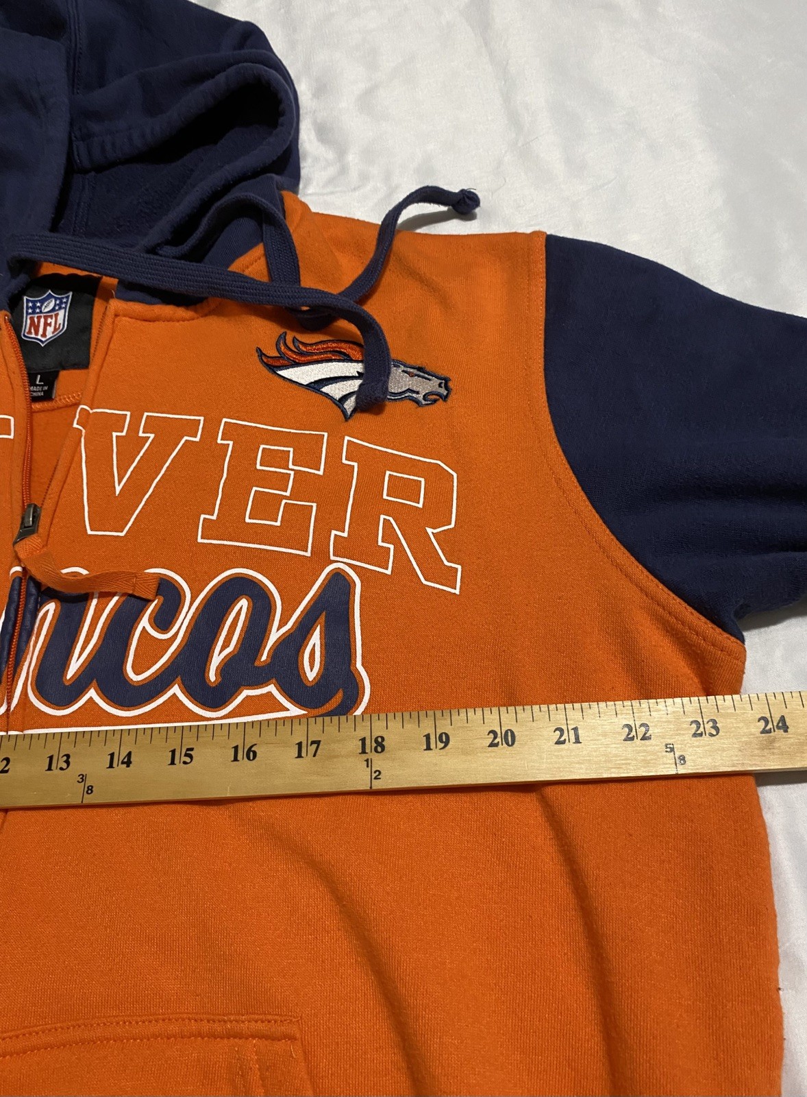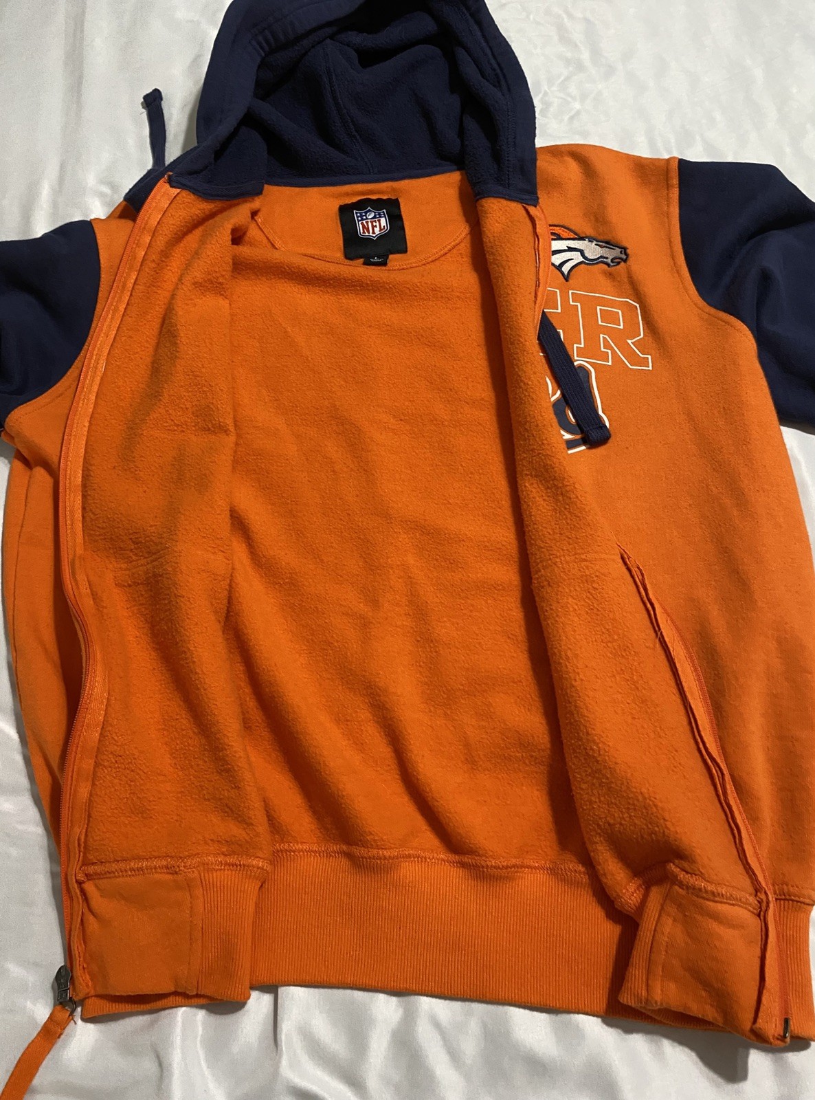 Vtg Denver Broncos Hoodie Men s Sz L Orange/Blue Full-Zip Sweatshirt Jacket