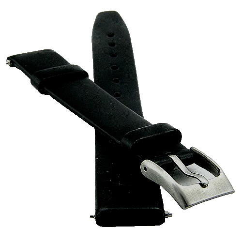 14mm Black Genuine Leather Watch Band Strap Women s Silver Color Buckle