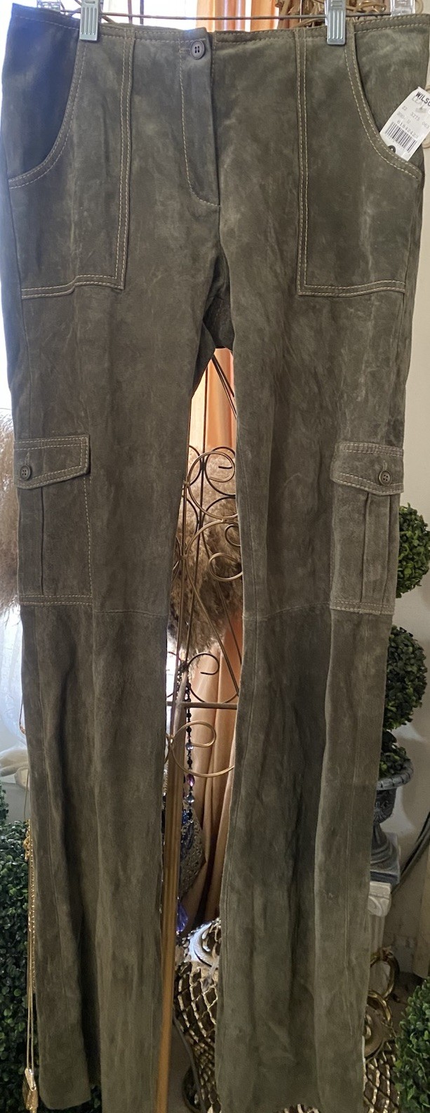 NWT WILSONS LEATHER Women s Maxima Suede Cargo Pants Army Green Size 8
