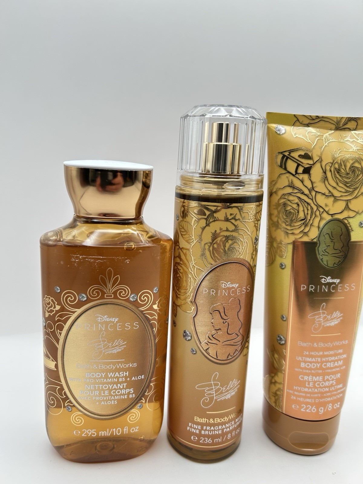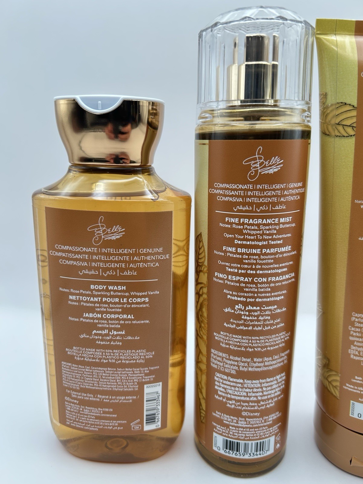 NEW Bath Body Works Disney Belle 3pc Gift Set Full Size Body Wash Cream Mist