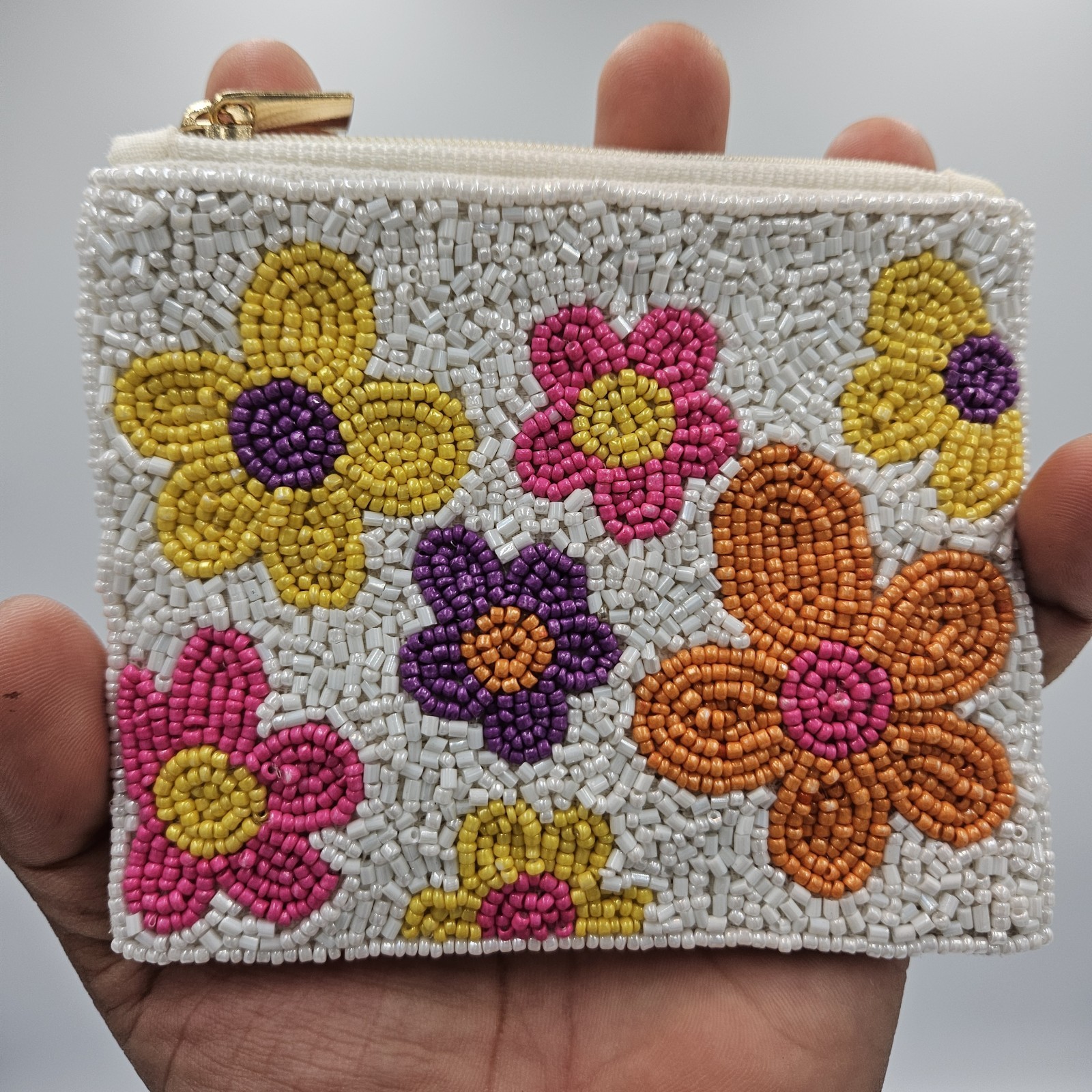 Multi Floral Beaded Coin Purse