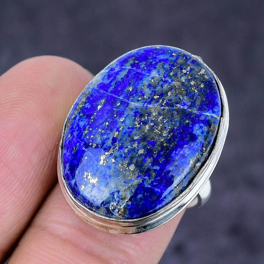 как выглядит Lapis Lazuli Gemstone 925 Sterling Silver Jewelry Ring Size 7 Q541 фото