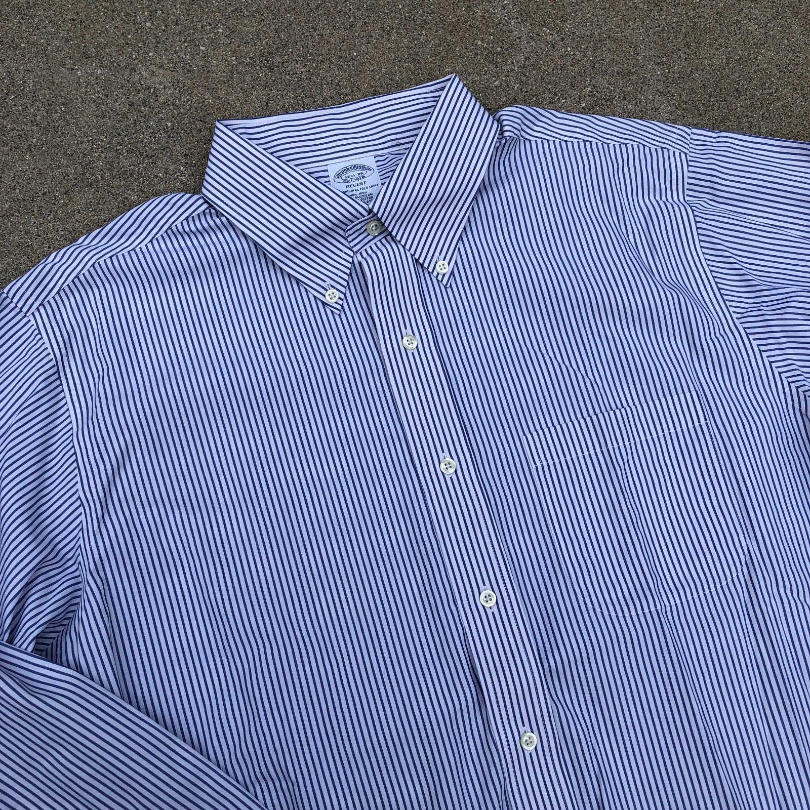 как выглядит BROOKS BROTHERS Regent Dress Shirt Mens 16.5-35 Blue Striped Long Sleeve USA фото