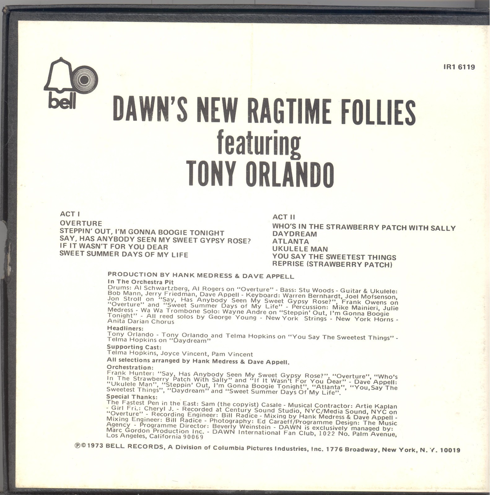 Tony Orlando Dawn's New Ragtime Follies 1974 Reel Tape 3.75 IPS 4 Track Mint