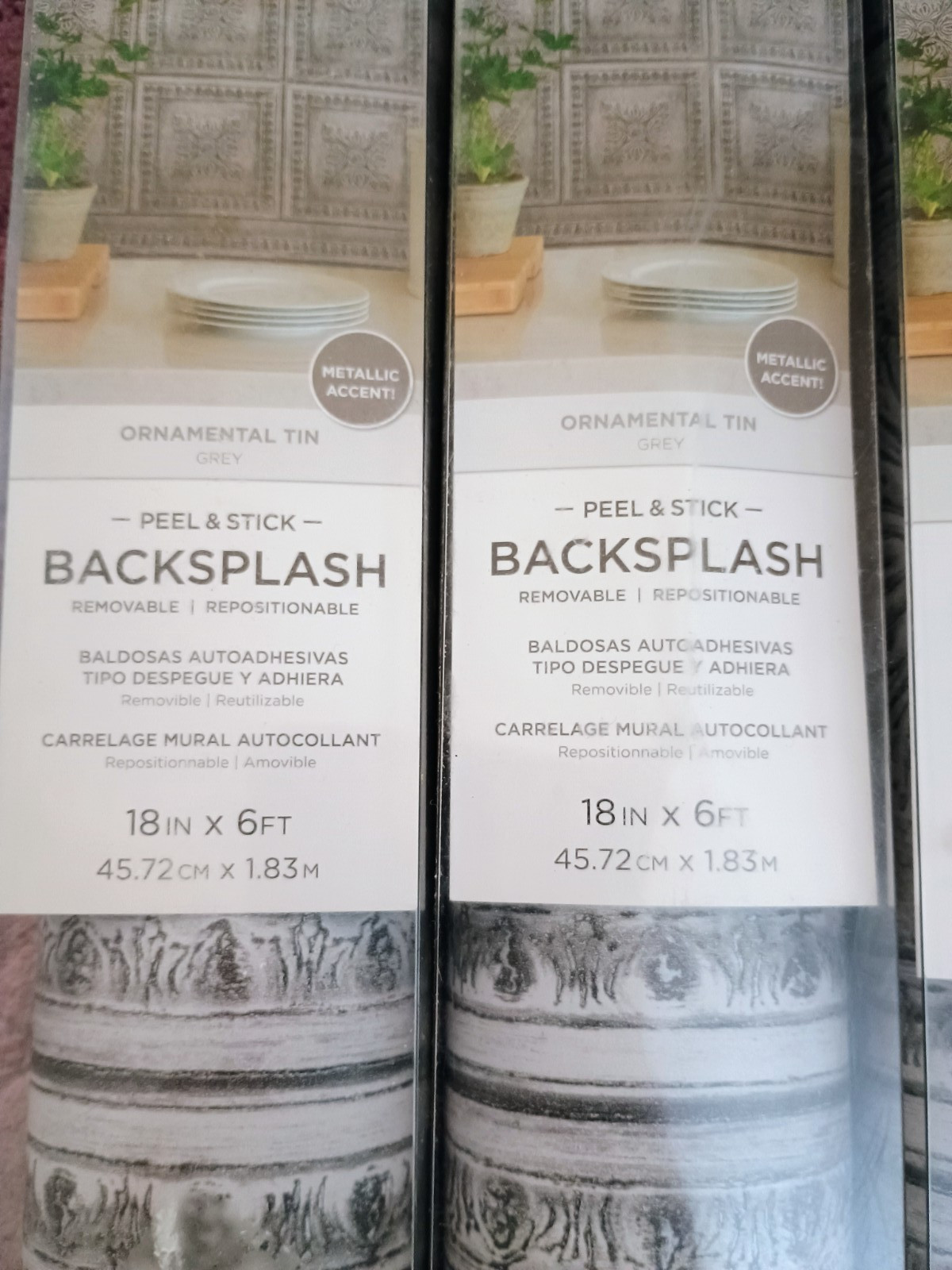 RoomMates Peel Stick Backsplash Rolls Ornamental Tin Grey 18x6' Lot of 6.5