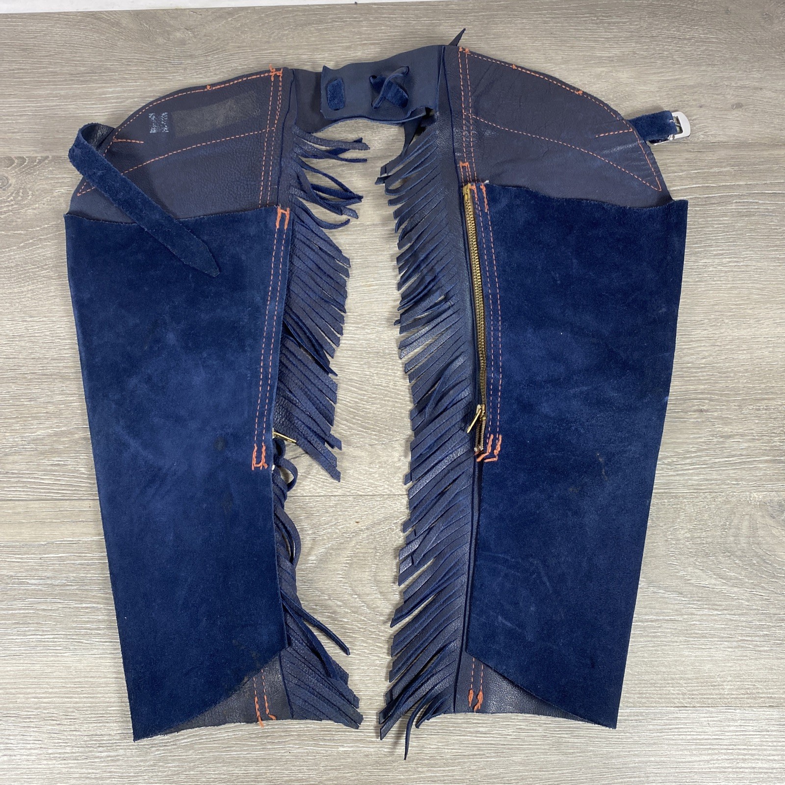 Vintage 1970's Blue Suede Fringe Chaps CHILD'S Size Rodeo Western EXCELLENT