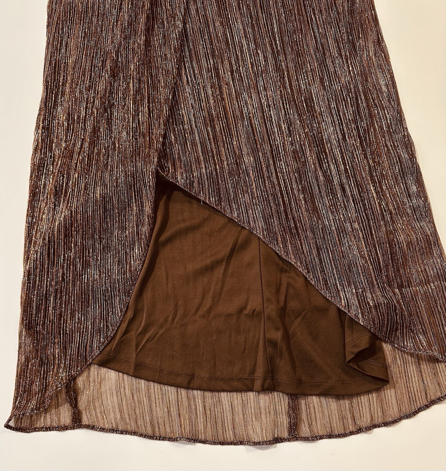 Adriana Papell Gold Shimmer Gown Sz 10 Cross Halter Keyhole Formal Party Wedding