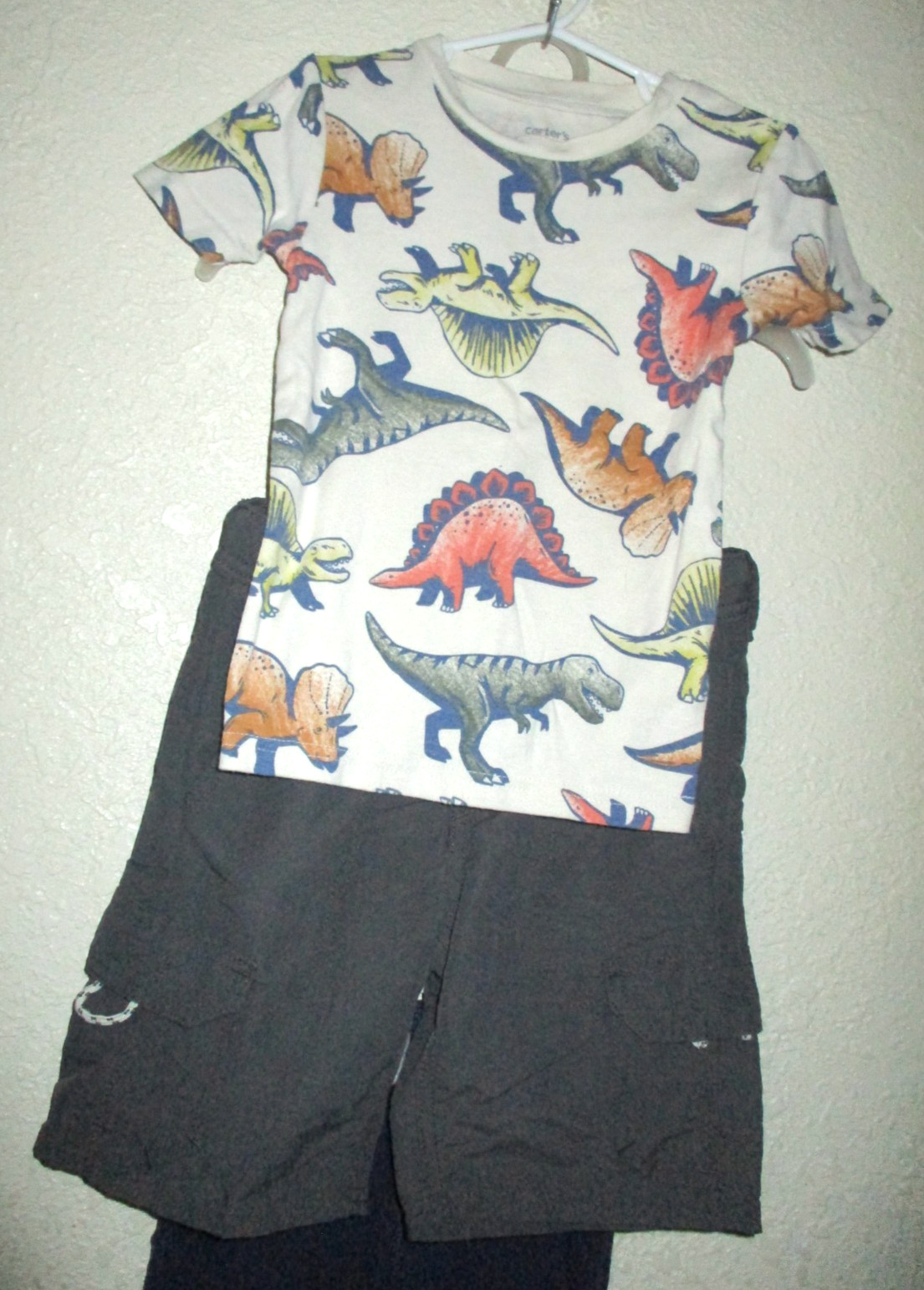 Carter's Boys Short Sleeve Dinosaur SS T-Shirt Cargo Shorts Pants Size 5
