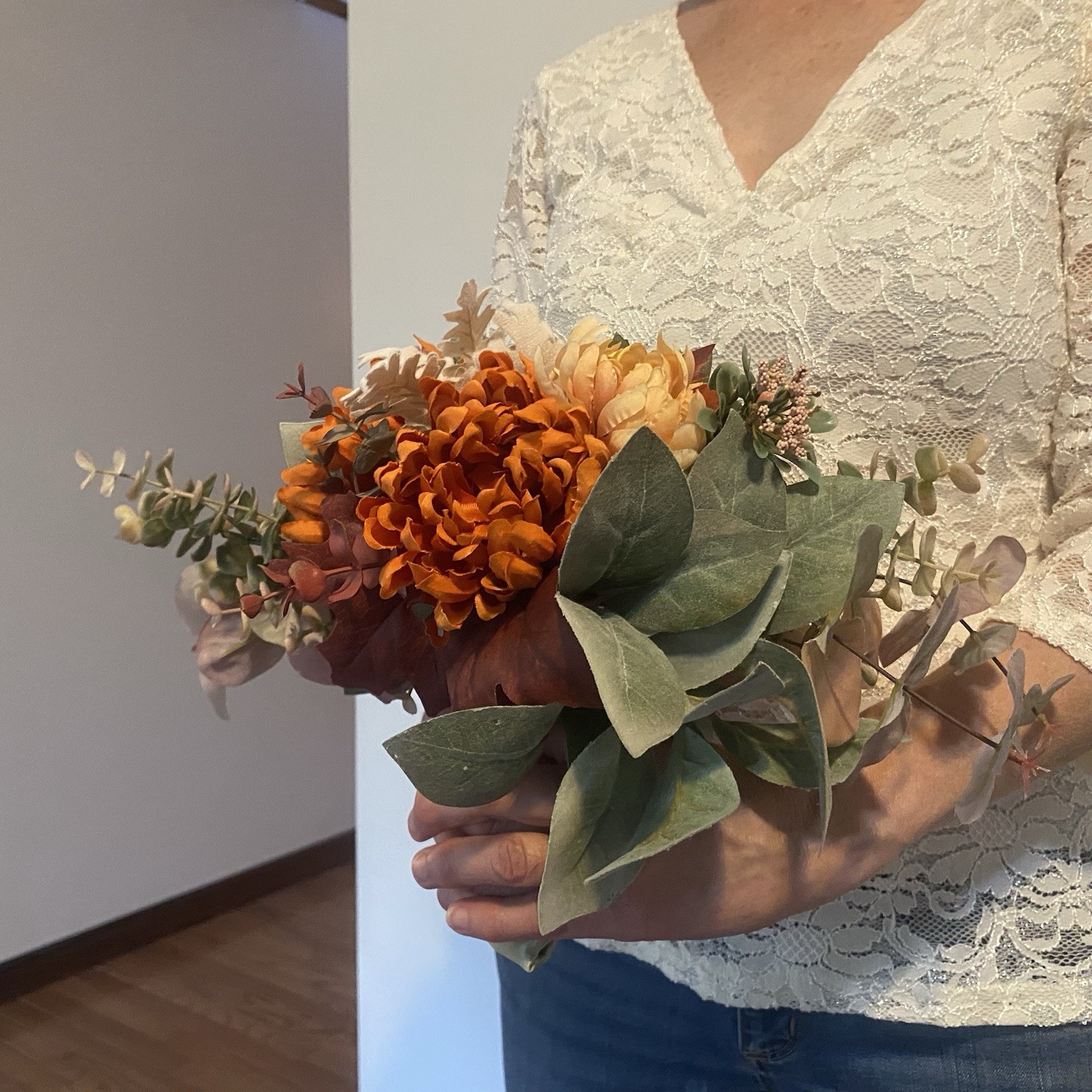 Bridal Wedding Bouquet Hand made Budget Handmade Faux Flowers Orange Red Yellow