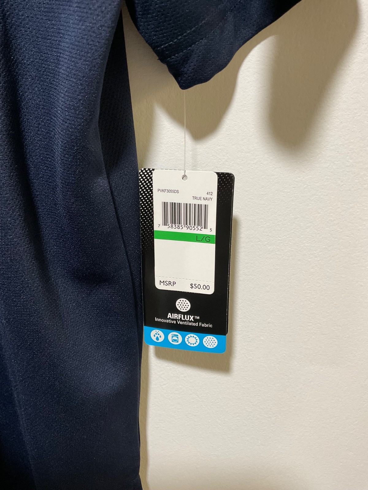как выглядит NWT PGA TOUR AIRFLUX GOLF POLO SHIRT DARK BLUE SZ Logo фото