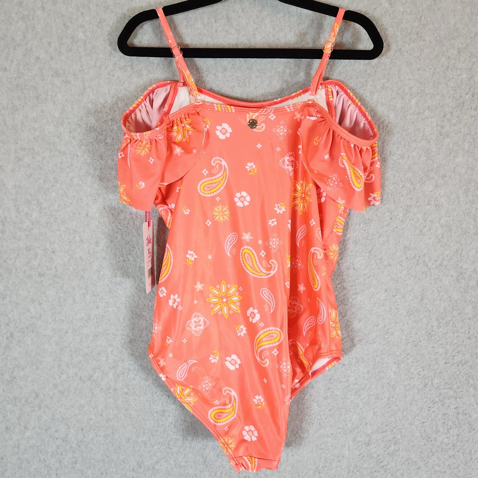 как выглядит Justice Girls XL 16/18 One-Piece Swimsuit Off Shoulder UPF 50 Sun Protect Coral фото