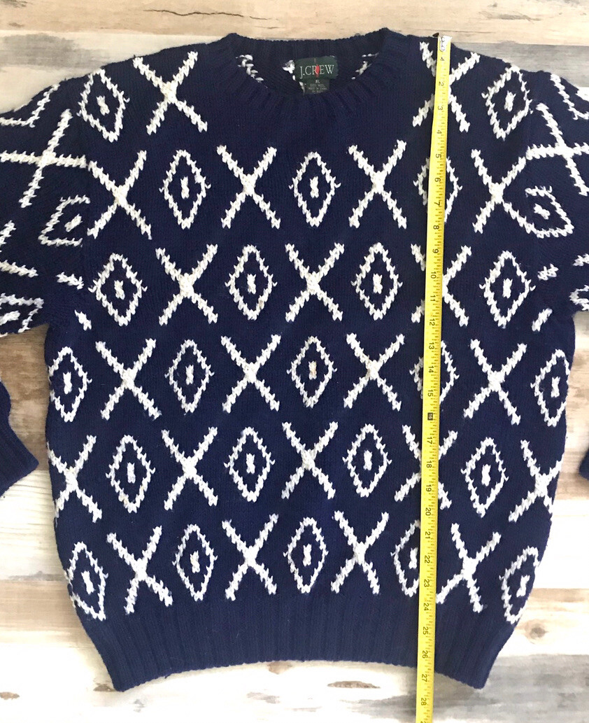 Vintage J Crew 100 Wool Chunky Knit Sweater Navy Blue White XL