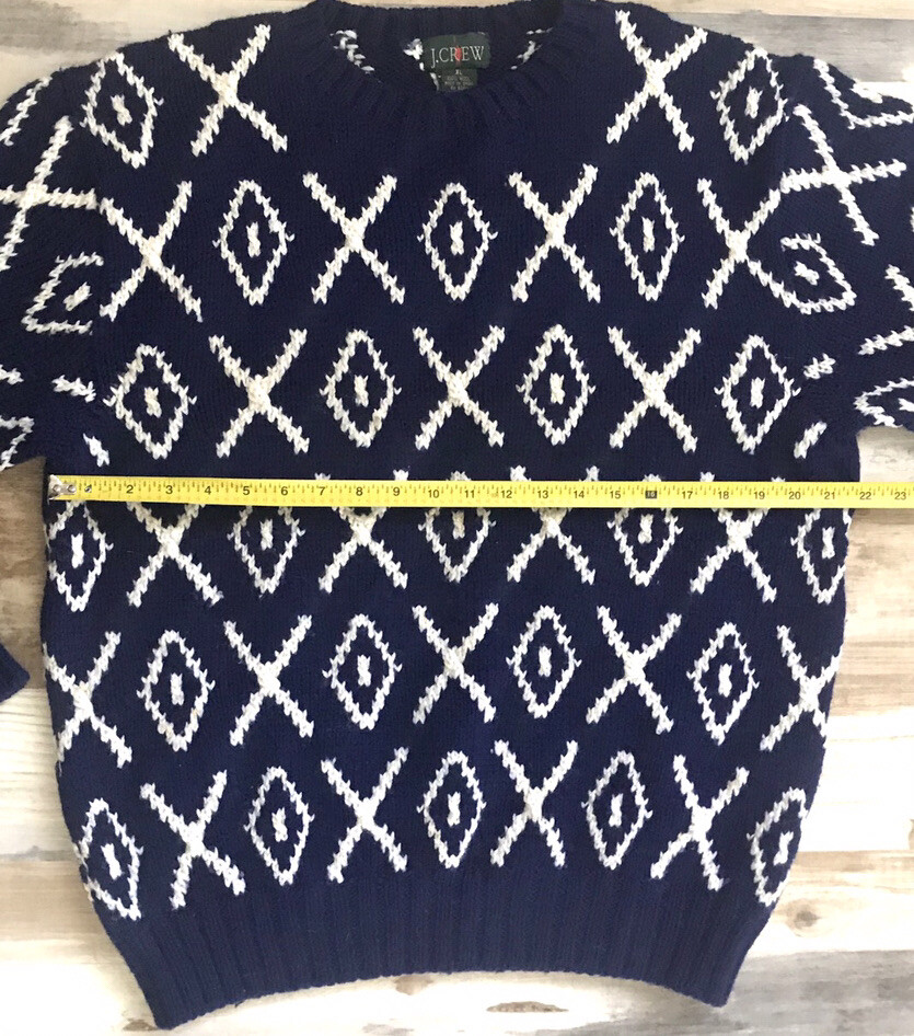 как выглядит Vintage J Crew 100 Wool Chunky Knit Sweater Navy Blue White XL фото