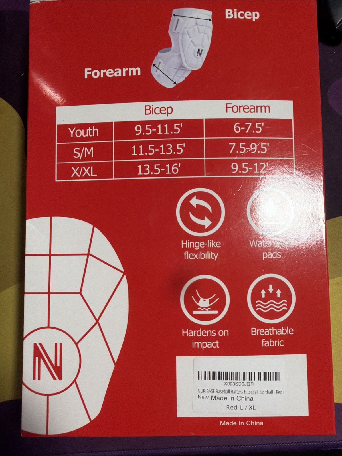 как выглядит Full Coverage Baseball Batters Elbow Guard L/Xl Red/White New фото