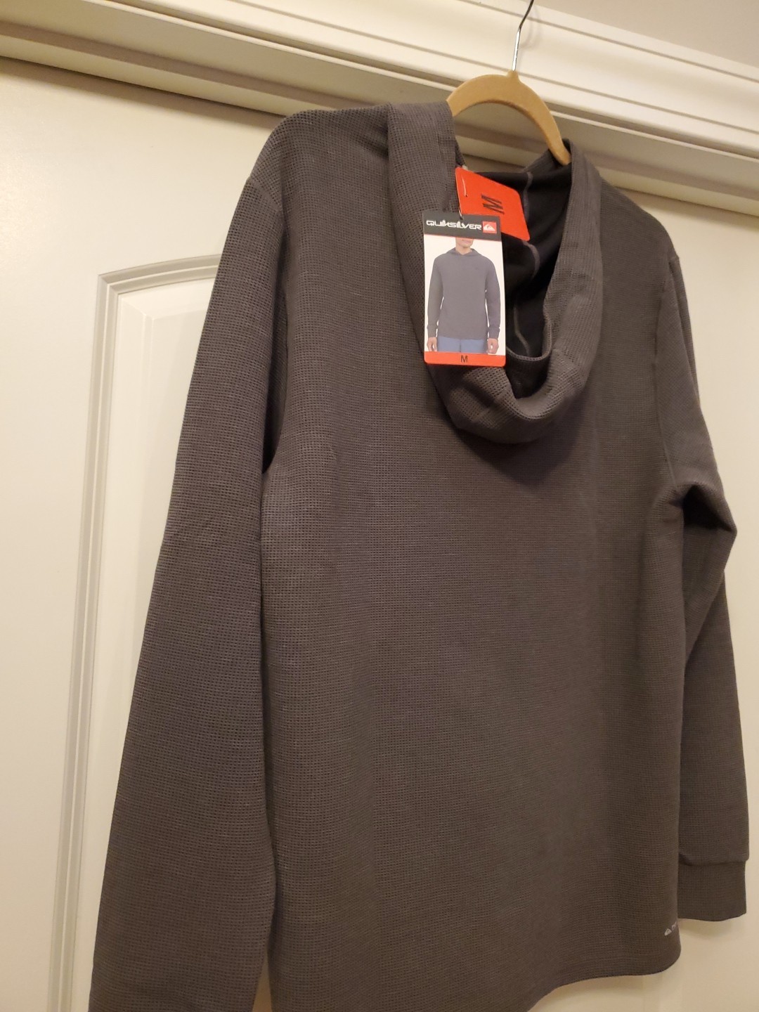 как выглядит Quiksilver Mens Textured Pullover Sweater Hoodie, Gray, Medium NEW w/tags фото