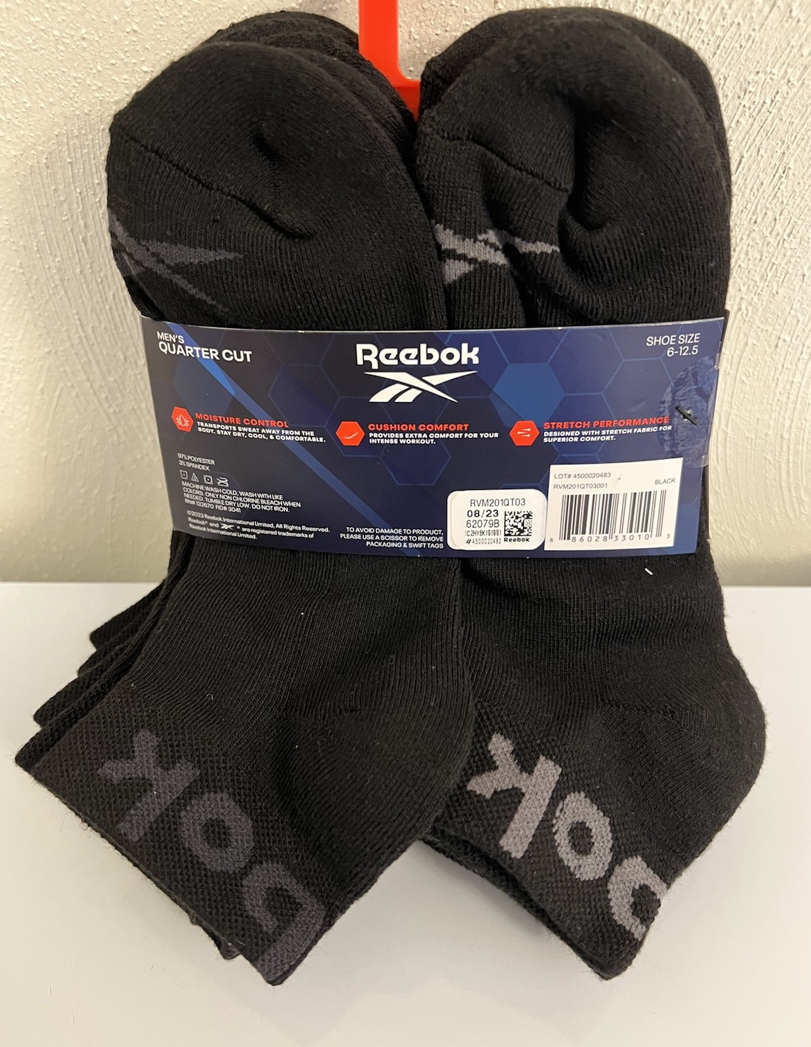 Reebok Men's Quarter Cut Socks 6 Pairs - Shoe Size 6-12.5