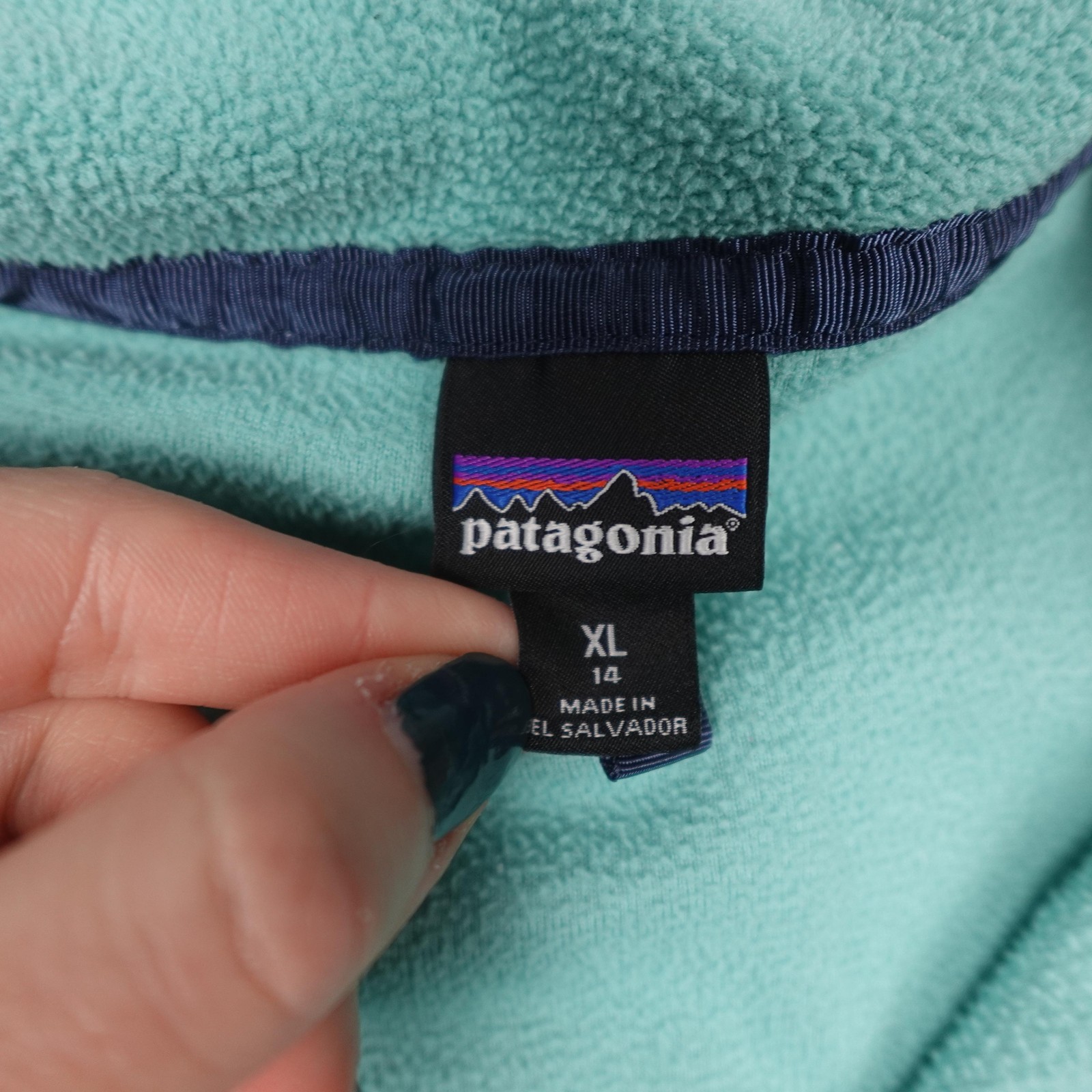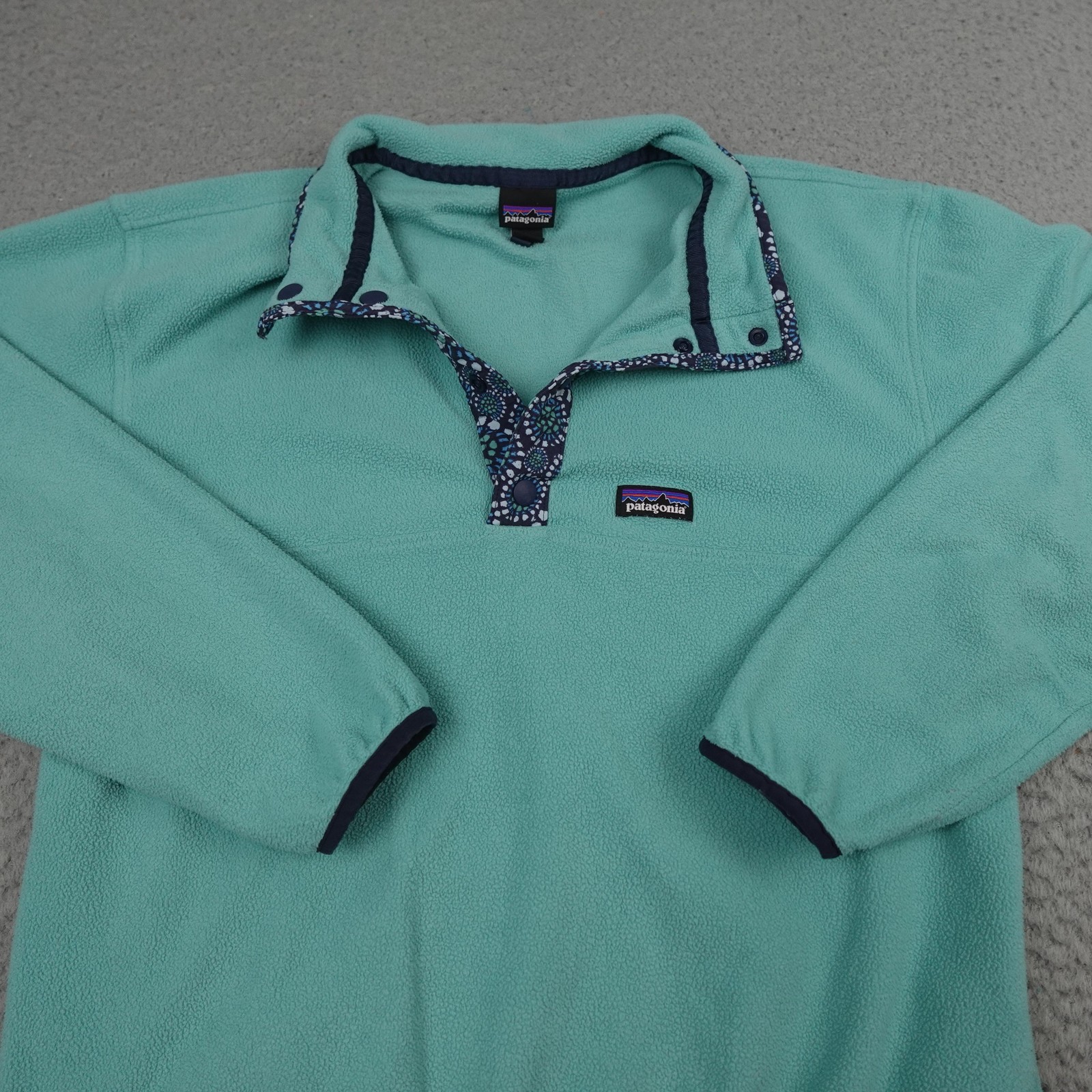 как выглядит Patagonia Synchilla Fleece Sweater Youth XL Mint Green Snap-T Pullover Girls фото