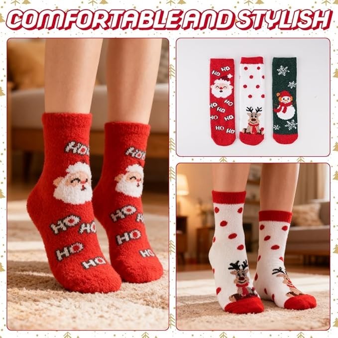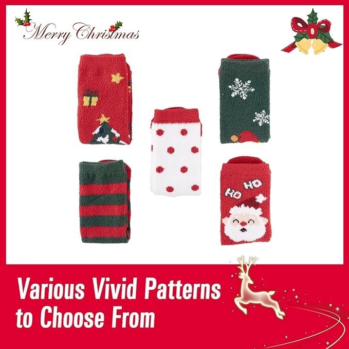 Labeol 5 Pairs Christmas Fuzzy Socks for Women Gifts,Funny Cute Cozy Fluffy Ther