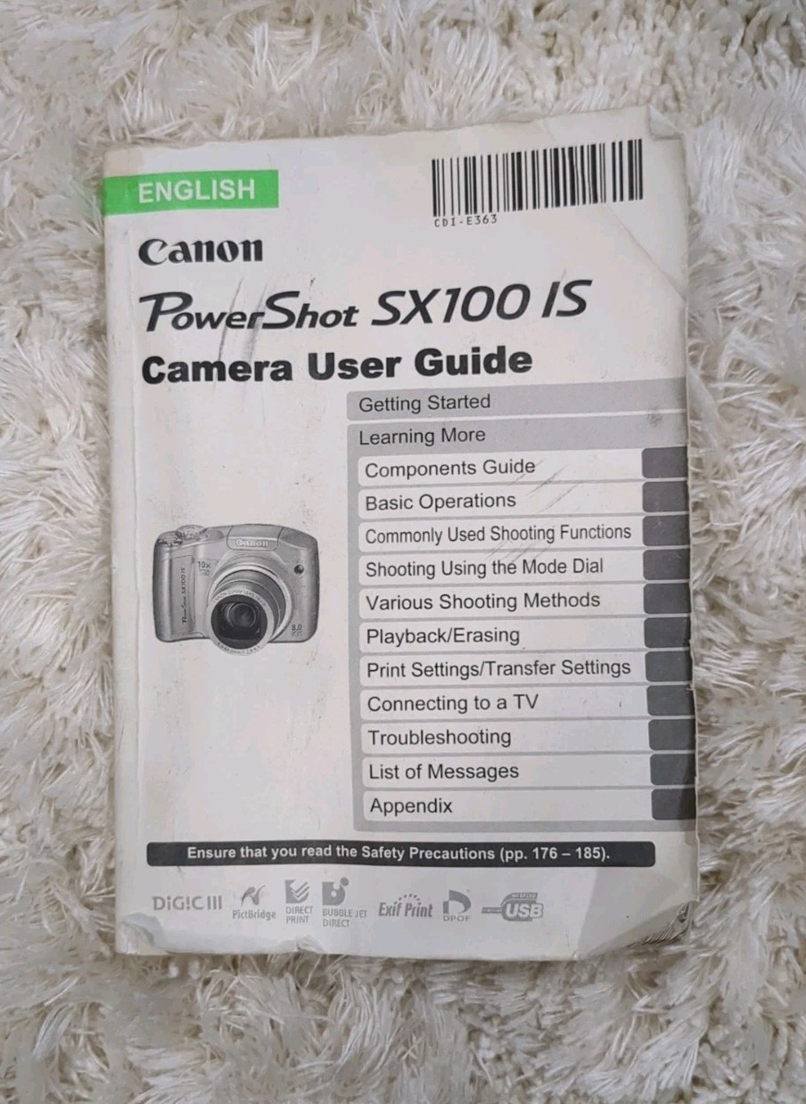 Canon PowerShot SX110 IS Digital Camera 8MP 10x Optical Zoom User Guide Case