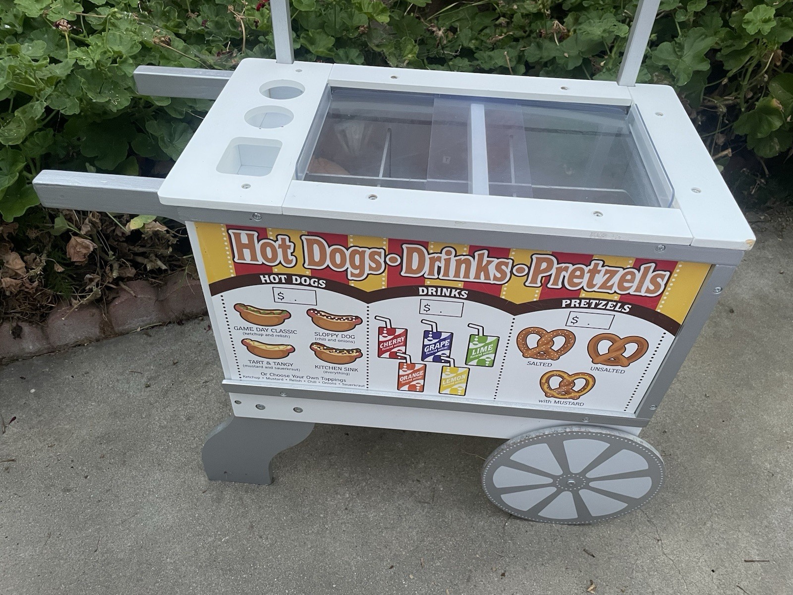 Melissa and Doug Ice Cream Hot Dog Snack Food Cart Wooden Stand Pretend Play Toy
