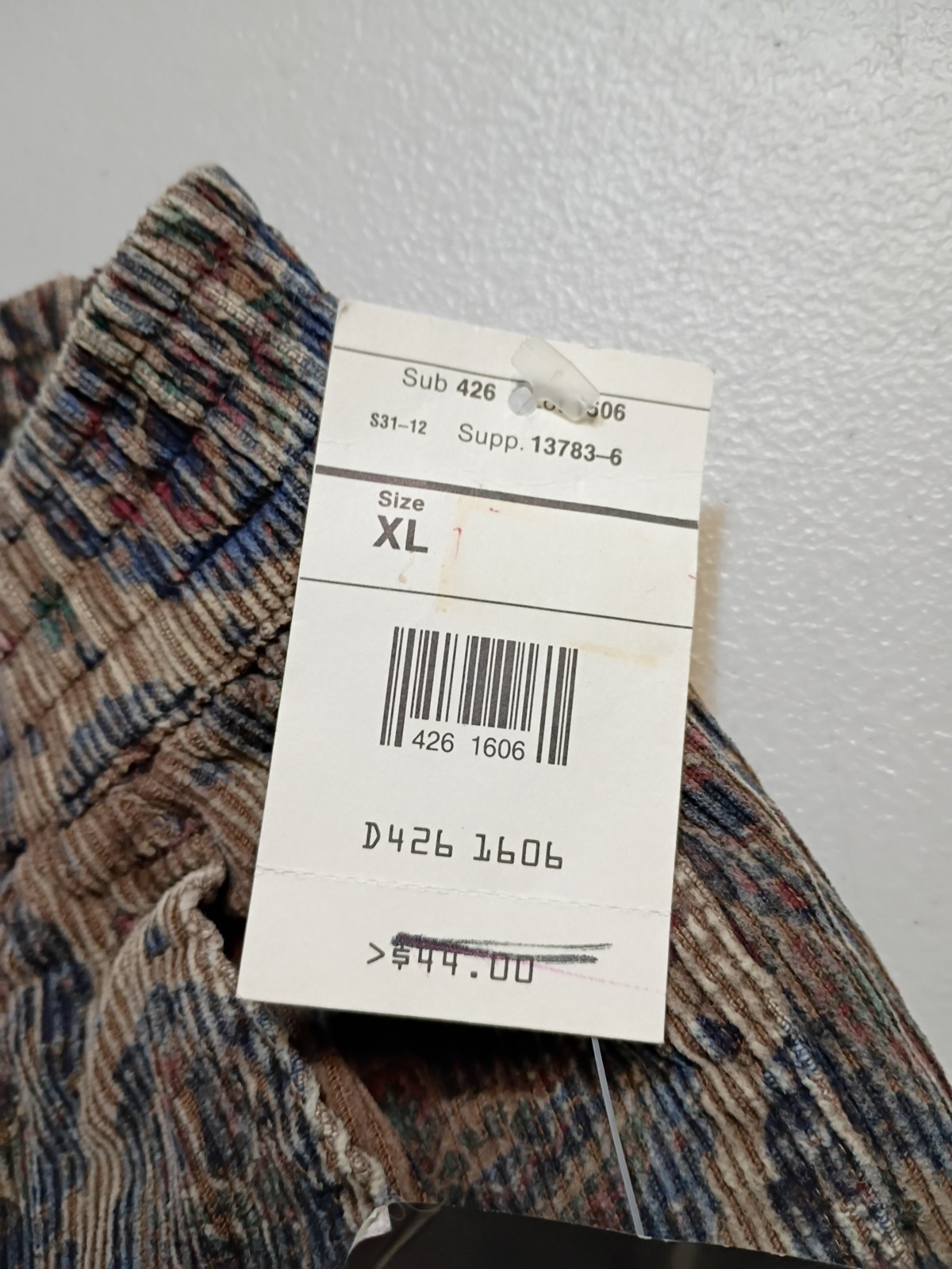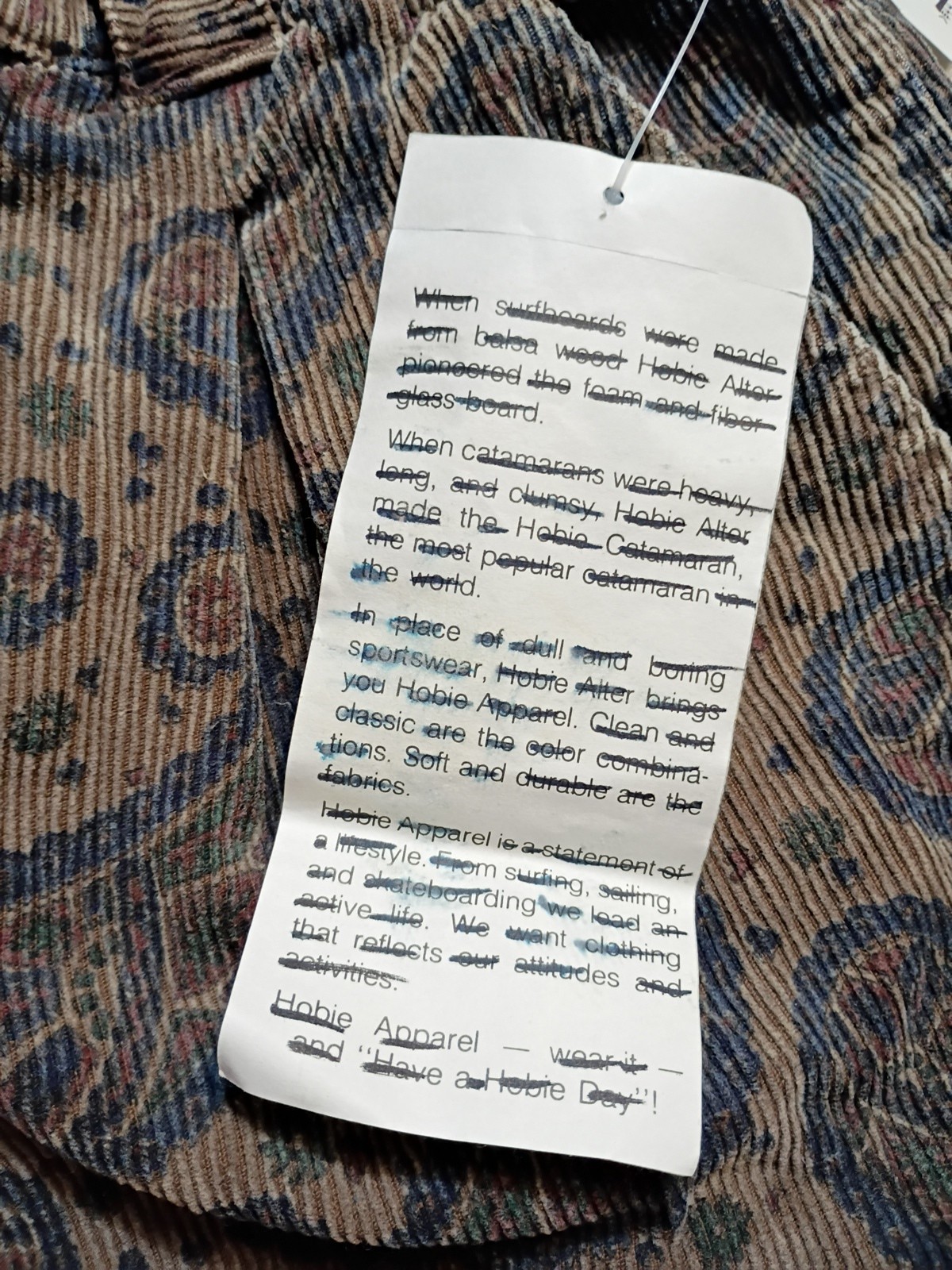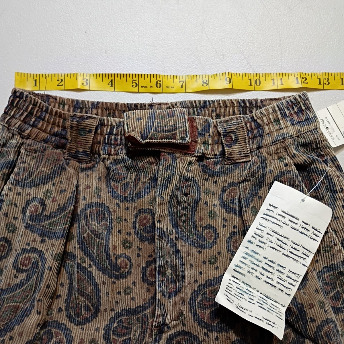 как выглядит Vtg Hobie 80s Deadstock Corduroy Pants Womens Size XL Brown Paisley 26x28 фото