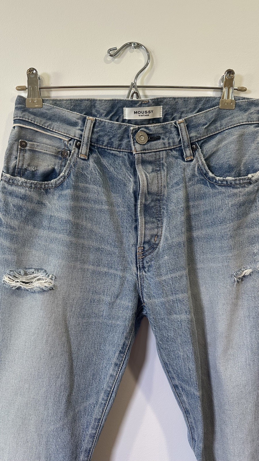 как выглядит Moussy Vintage Howa Jeans Sz27 Blue Distressed Cuffed Raw Hem Straight Leg Denim фото