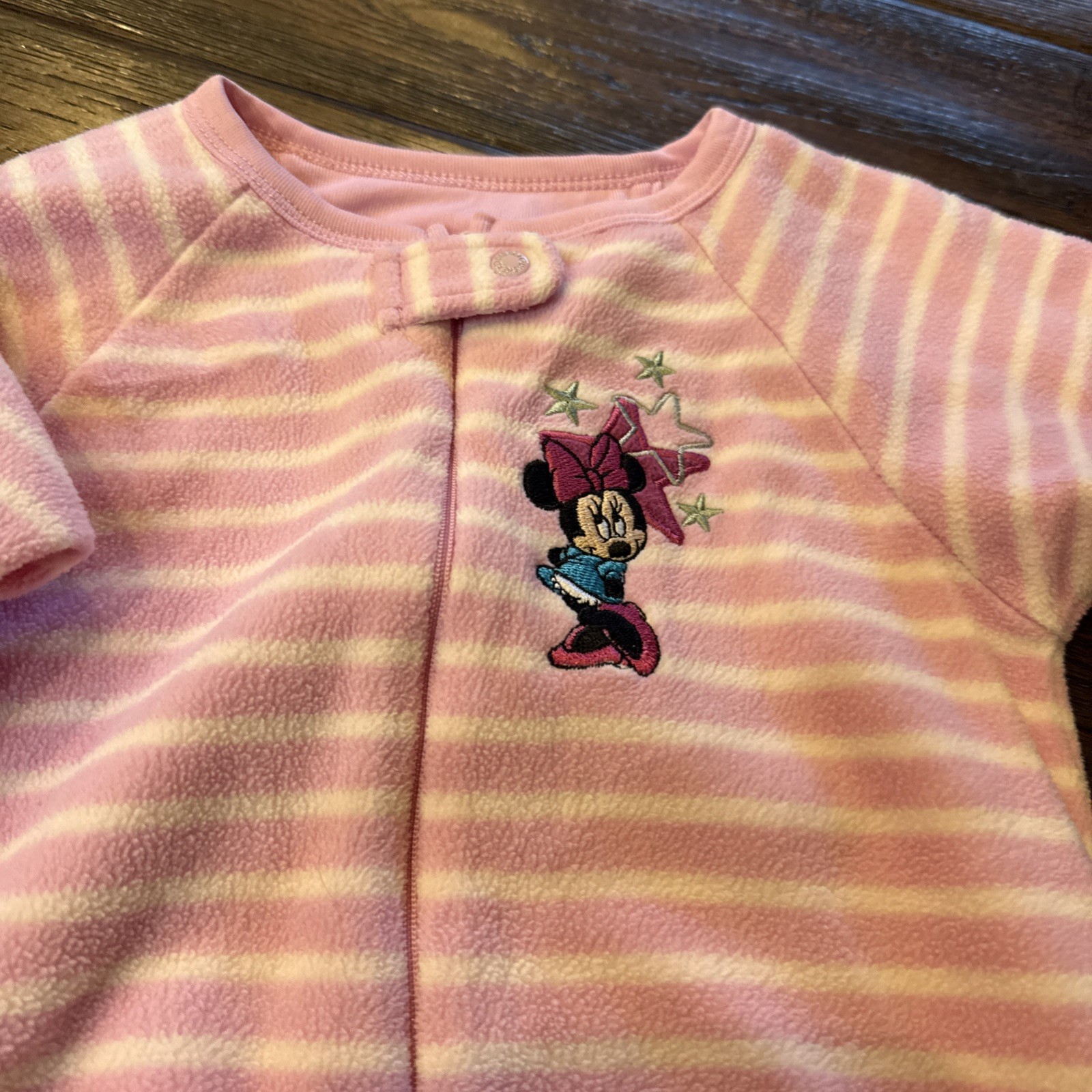 как выглядит Vtg 2y disney Store Minnie Mouse footed sleeper Zip Up Pink White фото