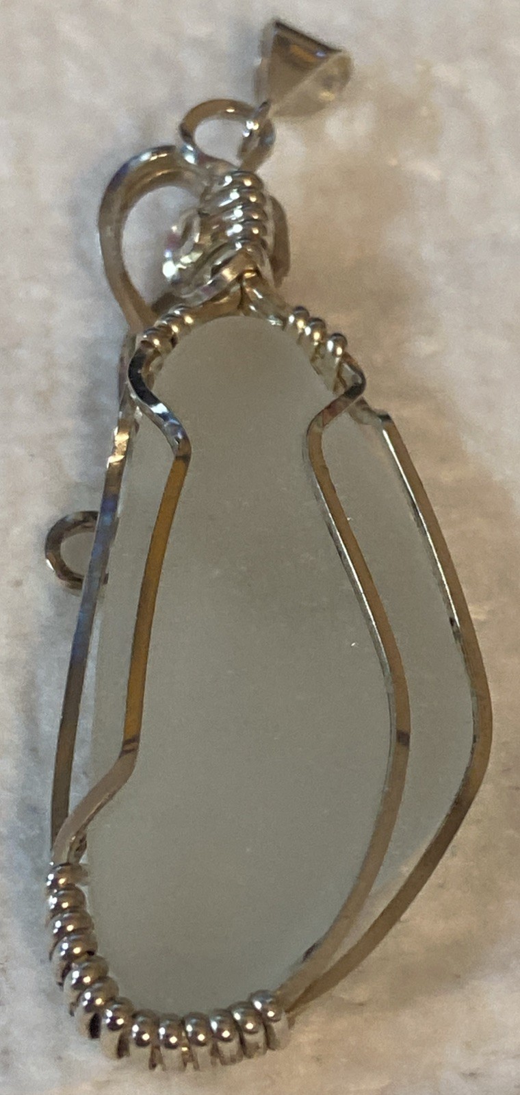 STERLING SILVER FROSTED AQUA ICE SEA GLASS PENDANT
