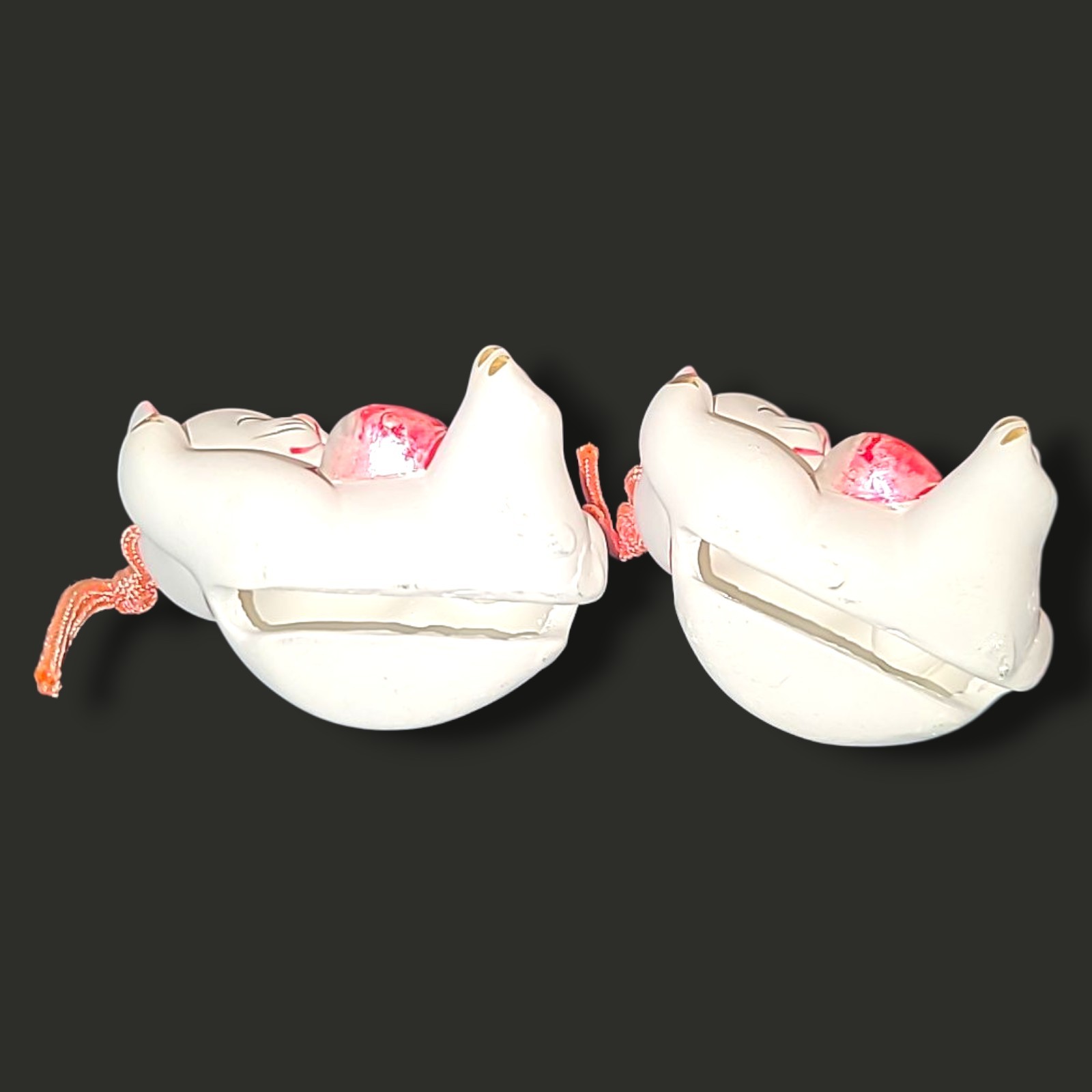 • Lot 2 Japanese Lucky Cat Ceramic Bells Maneki Neko With Fish Ornaments