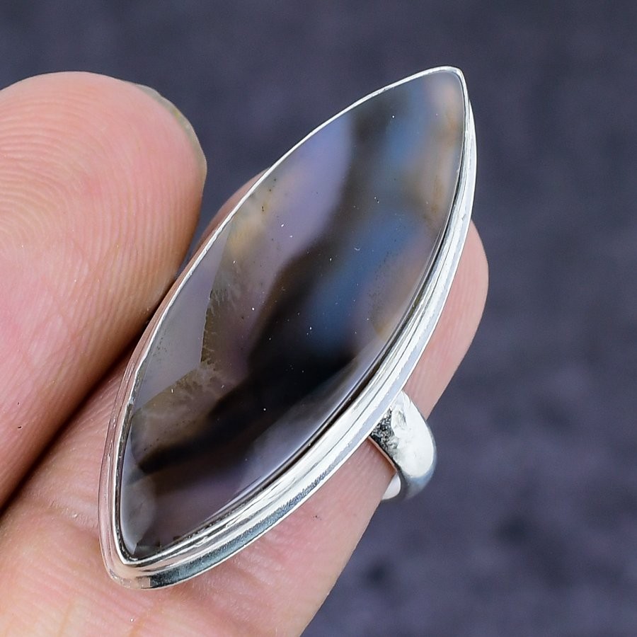 как выглядит Montana Agate Gemstone 925 Sterling Silver Jewelry Ring Size 7 L066 фото