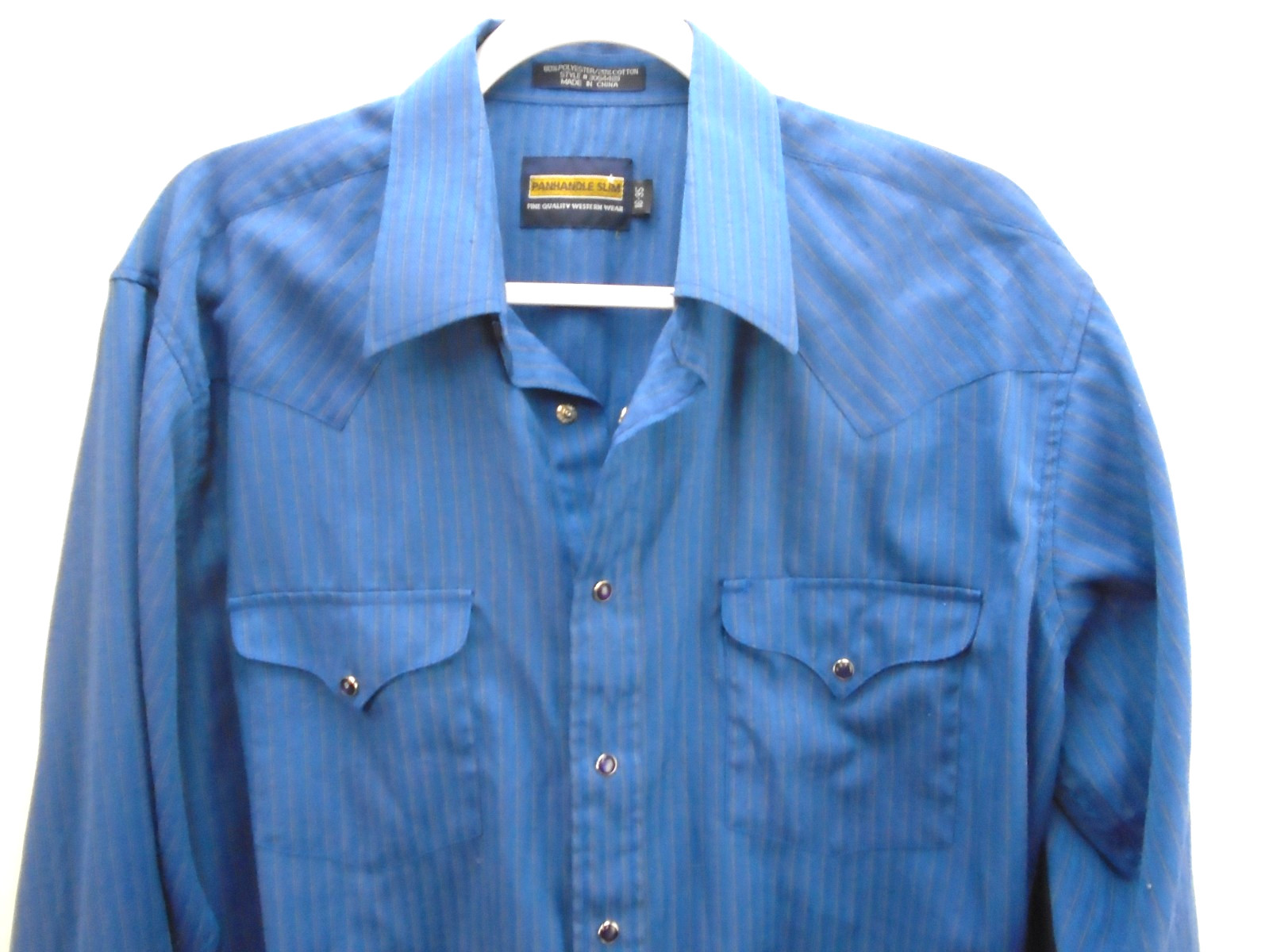 Panhandle Slim Shirt MENS 16-35 Western Plaid Blue Marbled Snap Long Sleeve