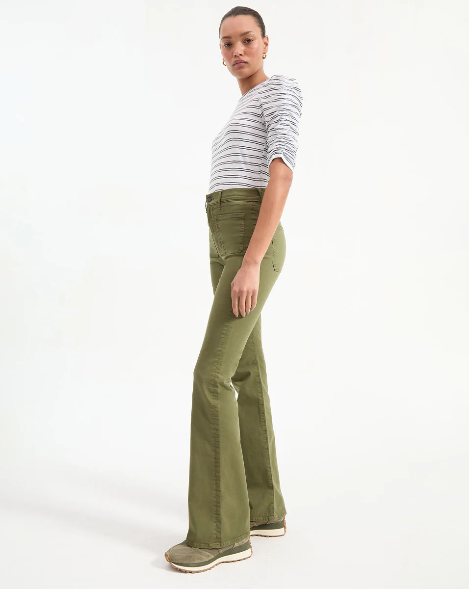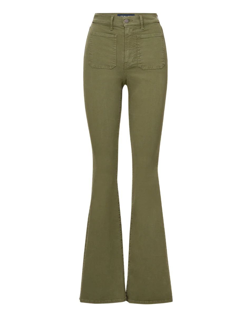 NWT 298 Veronica Beard Beverly Patch-Pocket Skinny-Flare Twill Pants, Army